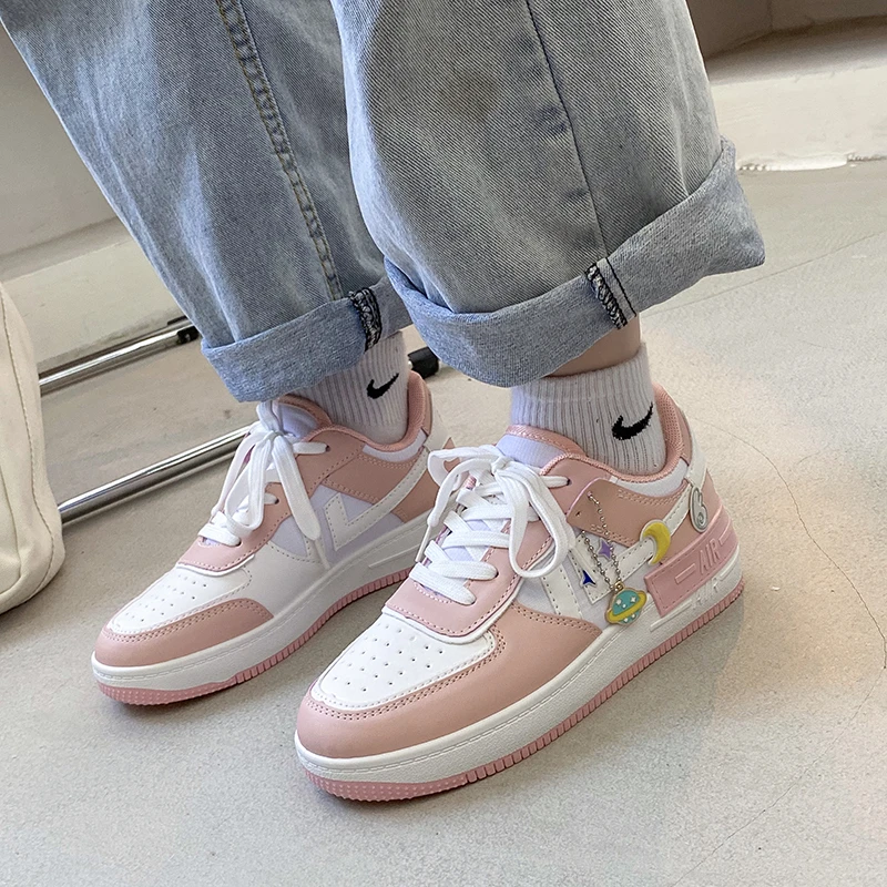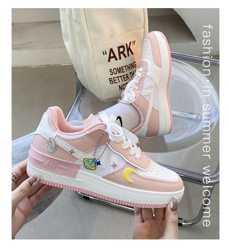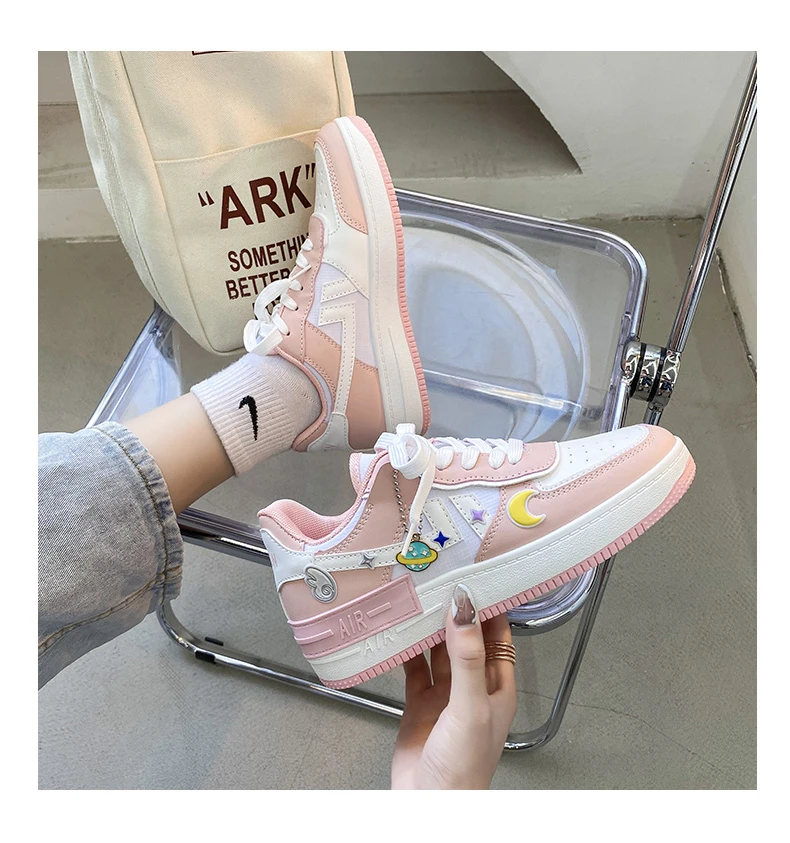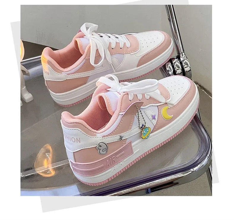 Женские массивные кроссовки на платформе, модная Осенняя дышащая удобная спортивная обувь для тенниса, женские белые кроссовки розового цвета, 2021