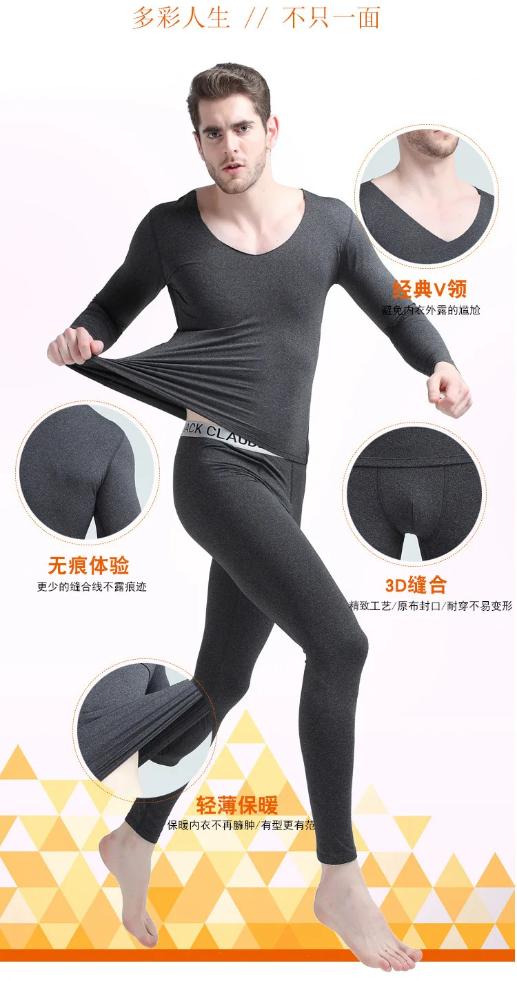 Мужское бесшовное термобелье, бархатная одежда для осени, длинные брюки, матовое зимнее термобелье