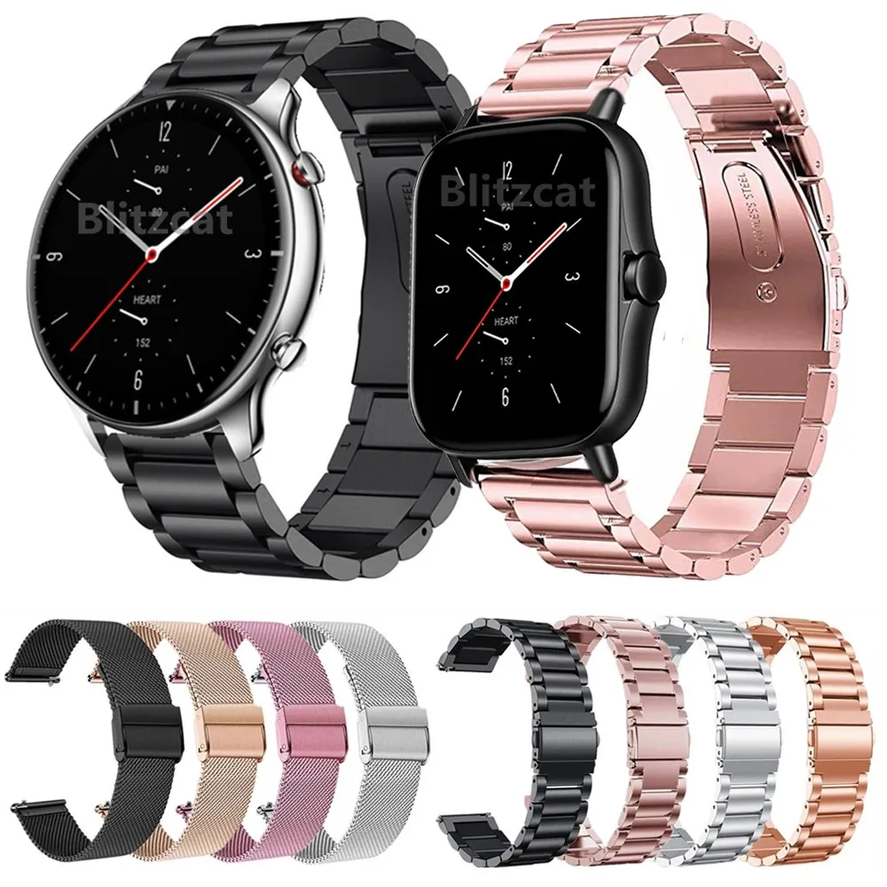 Ремешок Миланская петля из нержавеющей стали для Xiaomi Huami Amazfit Bip S U Lite Pop GTS 2 Mini GTR 2e, 47 мм 42 мм, браслет для наручных часов