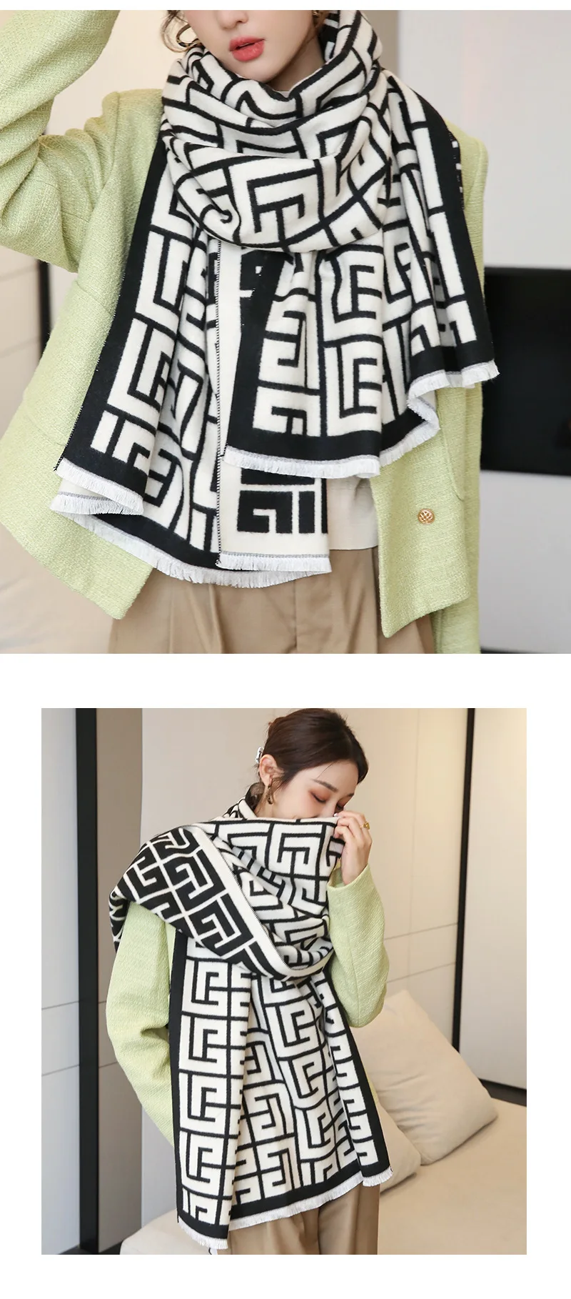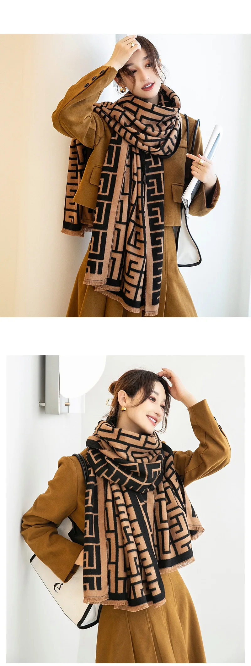 Роскошный брендовый зимний шарф с надписью, женский кашемировый теп...
