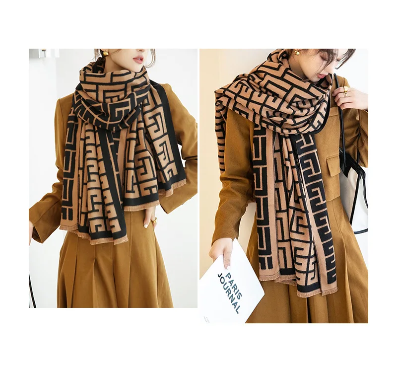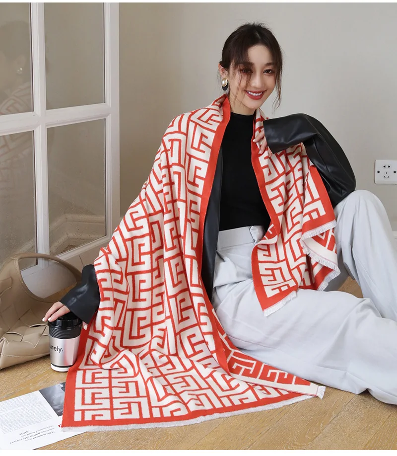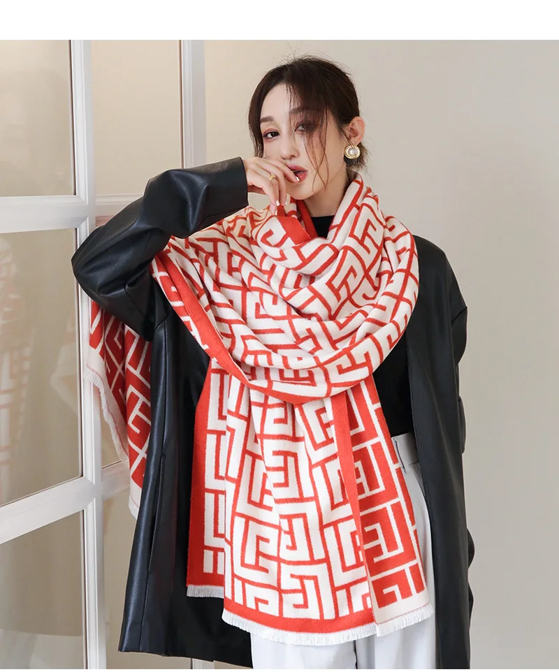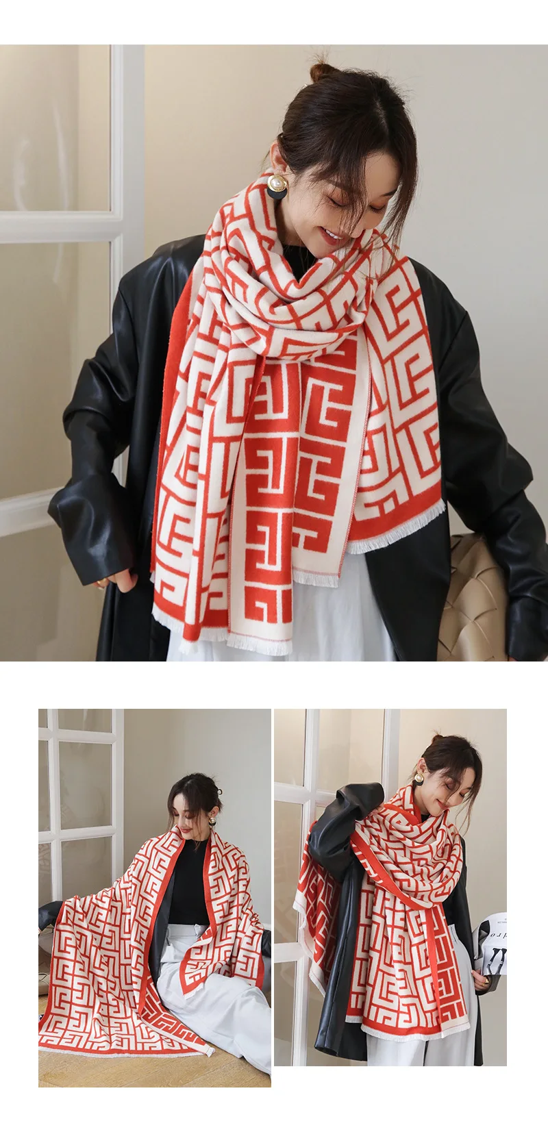 Роскошный брендовый зимний шарф в клетку с принтом, женский кашемировый теплый шарф из пашмины, женские шарфы, длинное одеяло, толстые мягкие шали, палантины