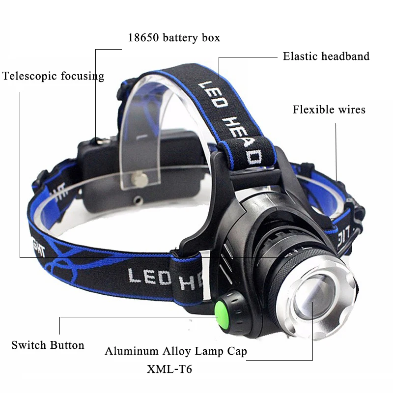 ①:18650 Батарейный блок;②:Эластичная повязка на голову;③:Гибкие провода;