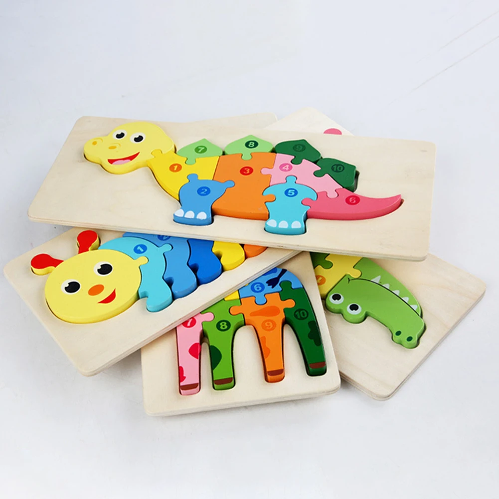 Детские игрушки Монтессори деревянный пазл 3D Животные головоломки ...