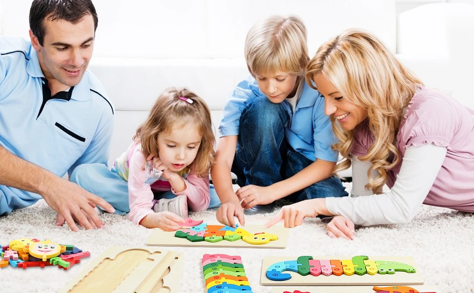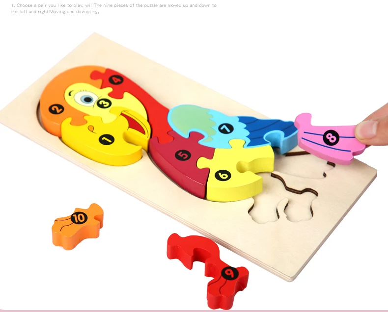 2. Помогает малышам познавать во время игры гусеницу и крокодила динозавра-жирафа. А также стимулируйте развитие зрительно-моторной координации вашего ребенка, диапазона внимания и цифр подсчета. Это полезные головоломки для формирования ребенка.