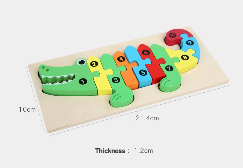 Деревянные пазлы в виде животных, крокодил, динозавр, цифровые позн...