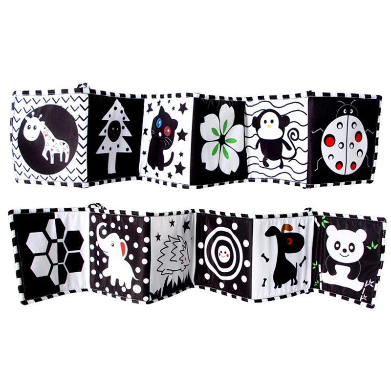 Черно-белые детские игрушки от 0 до 12 месяцев, Игрушки для раннего обучения, детская кровать, бампер, подвесная кроватка, визуальные Развивающие игрушки для малышей