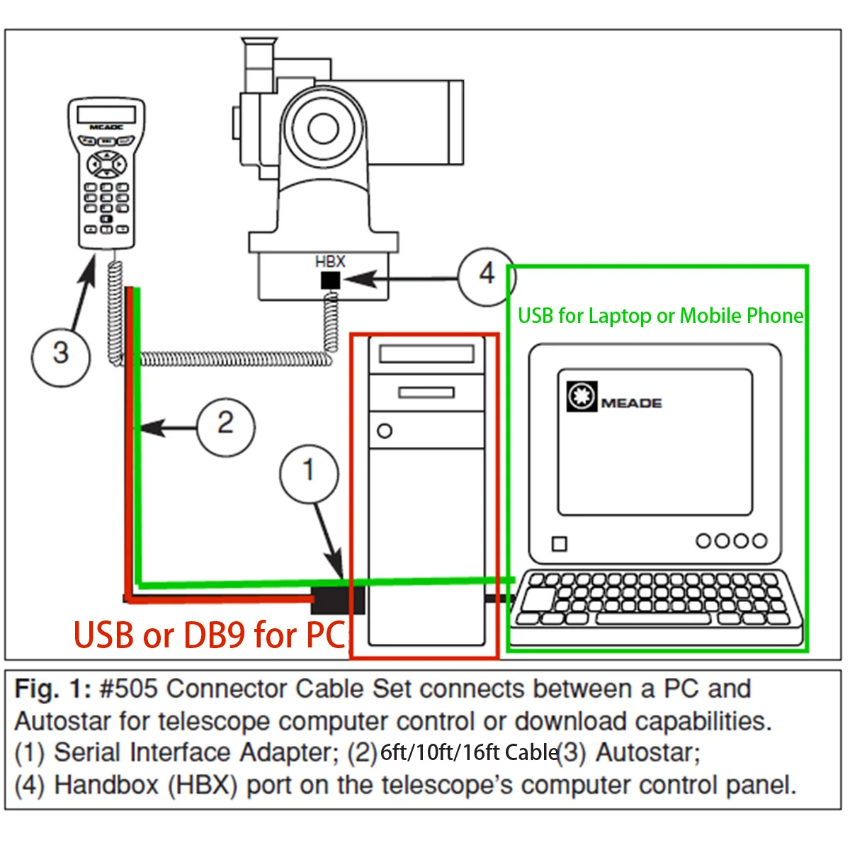 Телескопический компьютер Meade 505, с USB на ручку, RJ9, RJ10