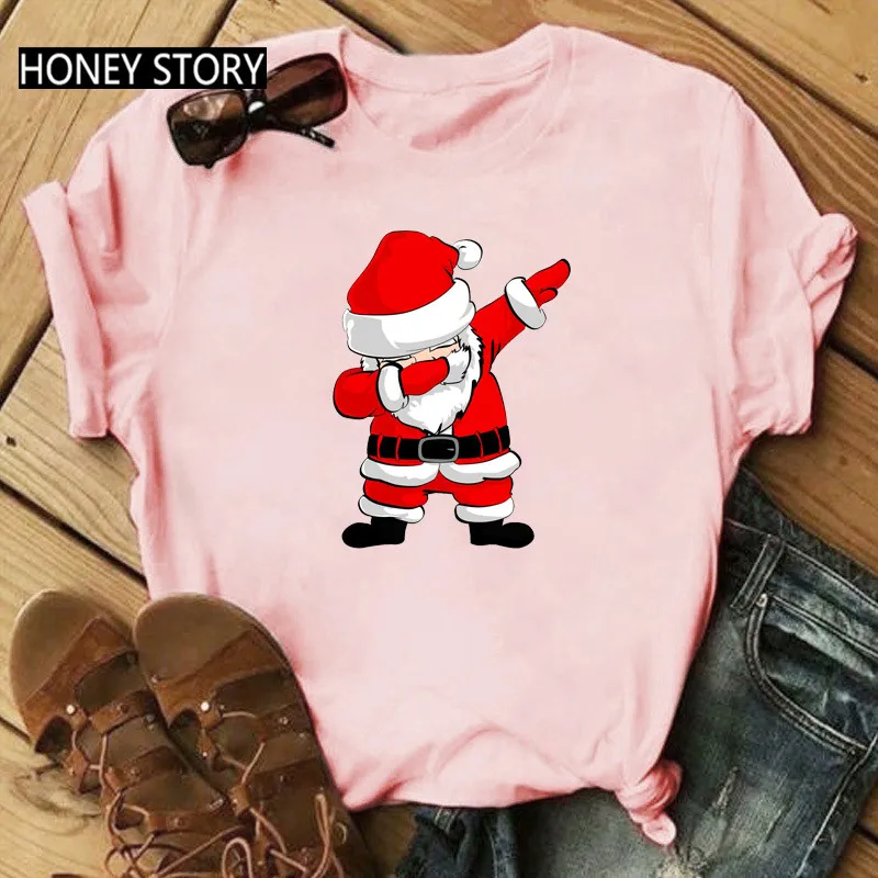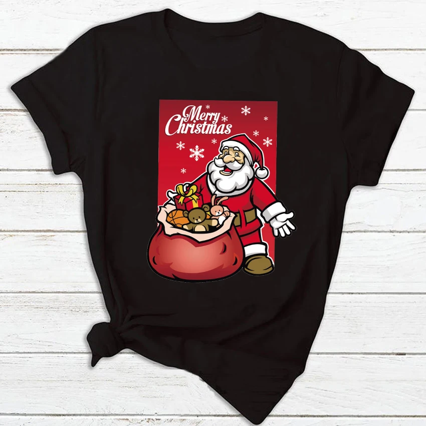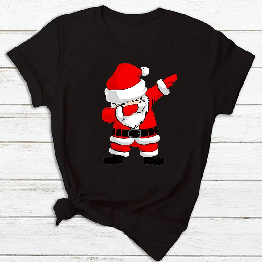 Женская футболка с изображением Санты на Рождество, унисекс, модные черные футболки с коротким рукавом, повседневные топы в стиле Харадзюку для мальчиков и девочек