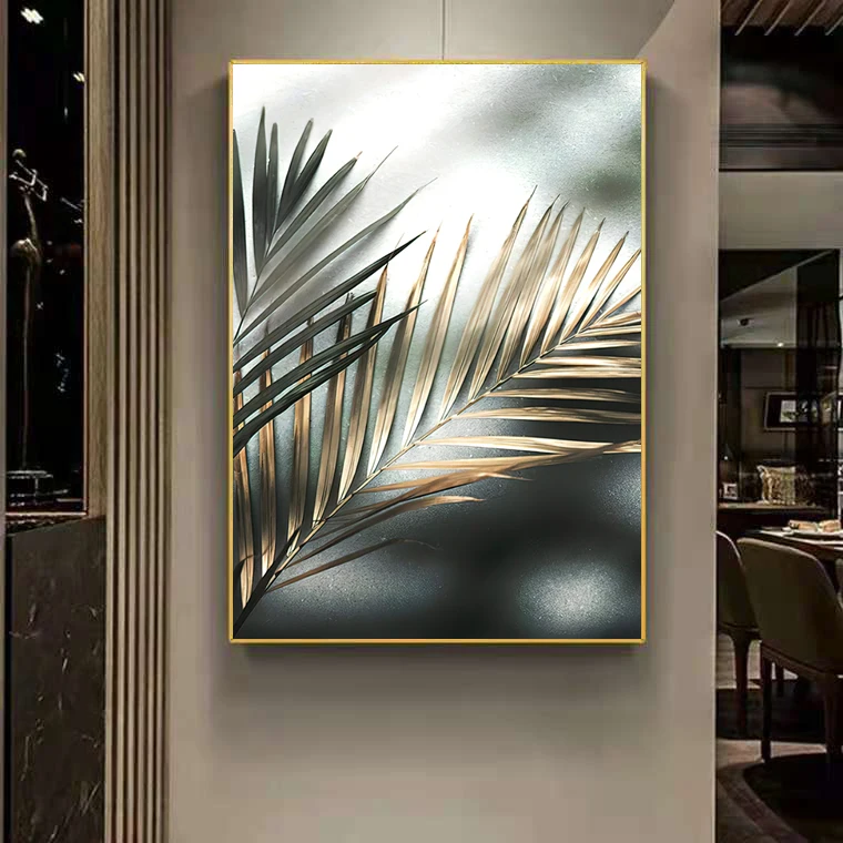 Современная Настенная роспись с черными золотыми листьями для гости...