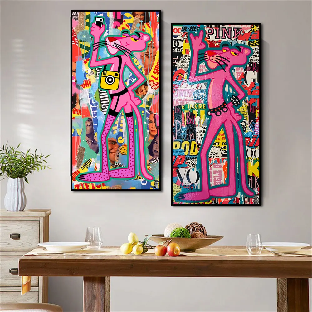 Мультяшный постер рок Розовая пантера поп Красочные граффити Печать на холсте живопись Настенная картина для гостиной украшение дома