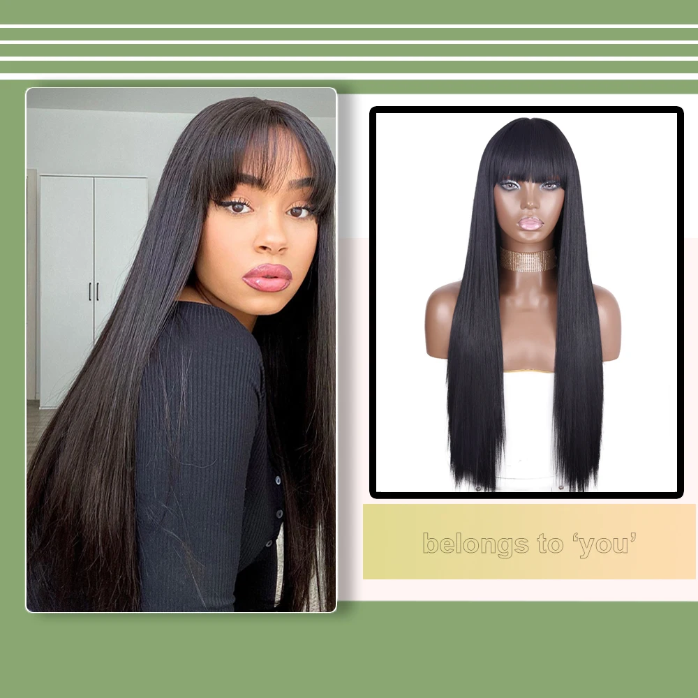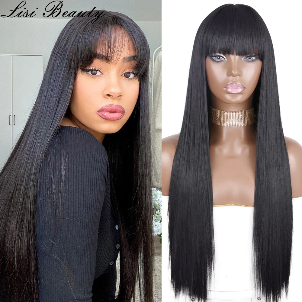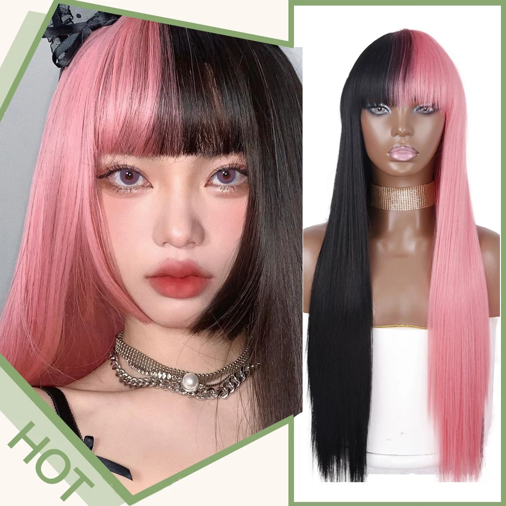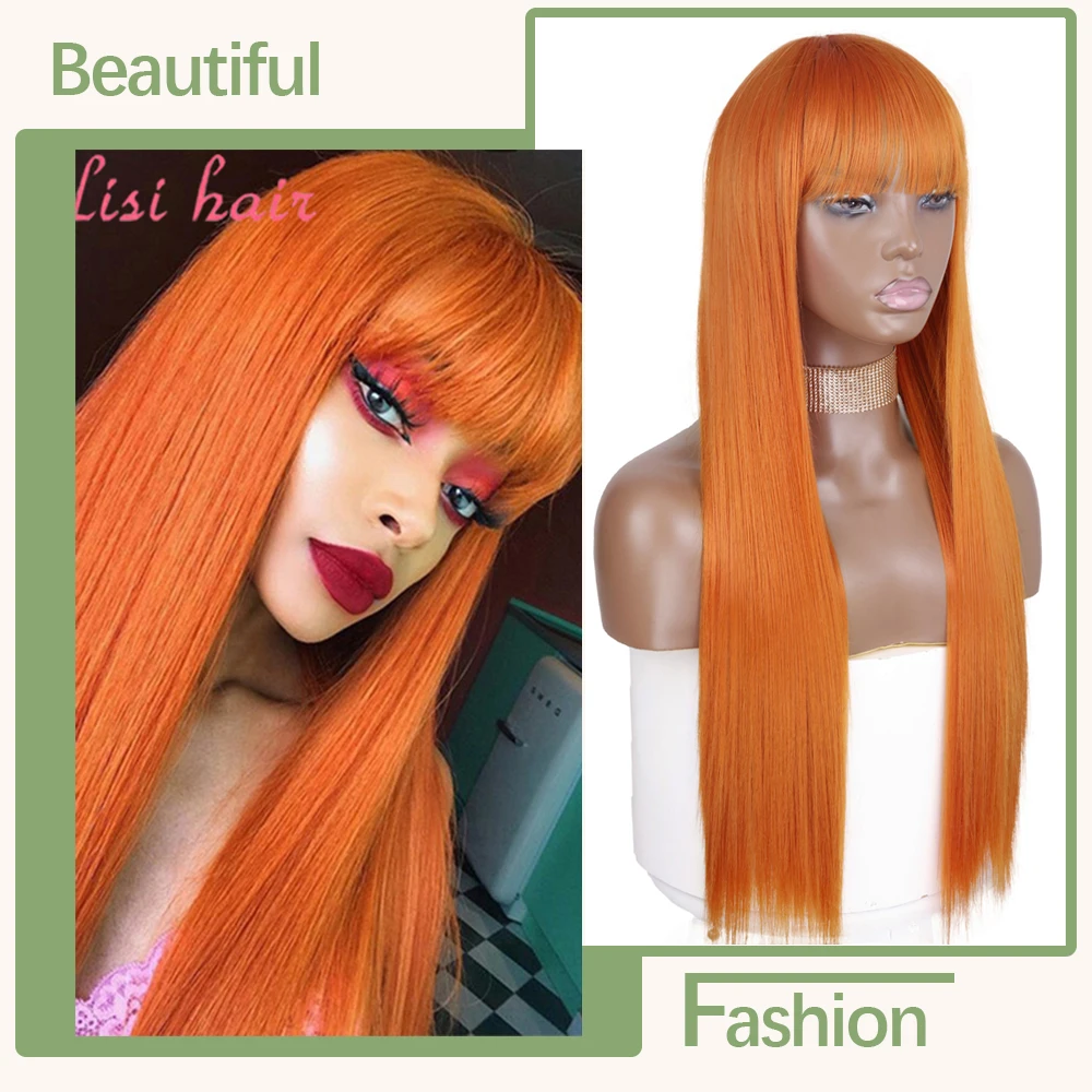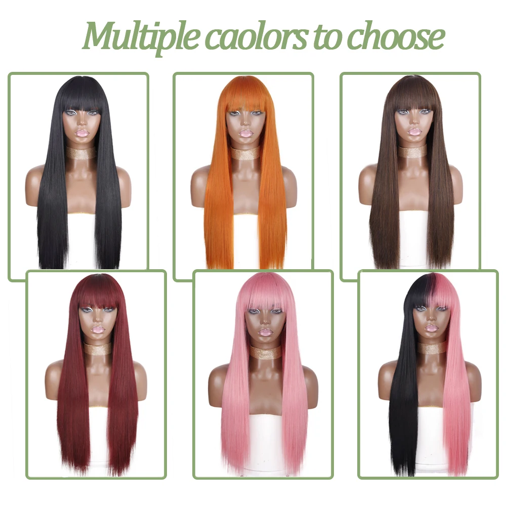Длинный прямой черный парик с челкой парики из синтетических волос челка с париком для женщин оранжевый розовый бордовый красный термостойкие парики