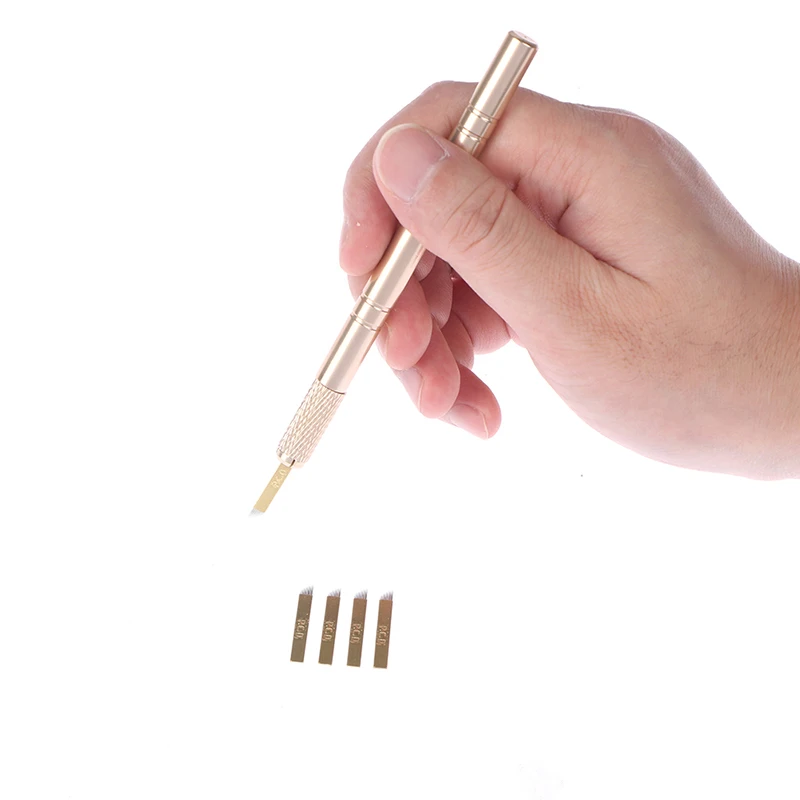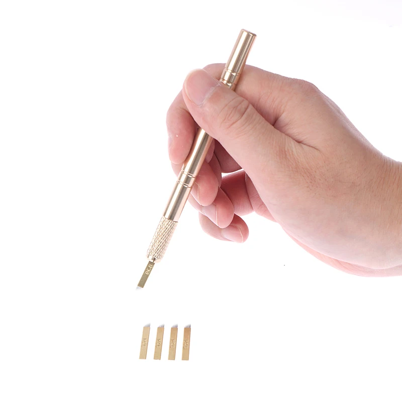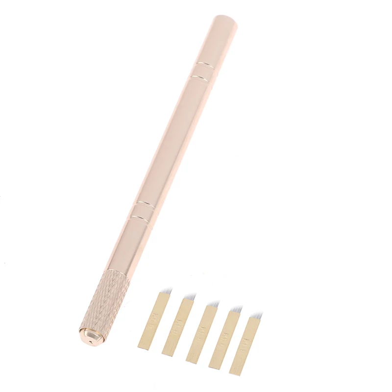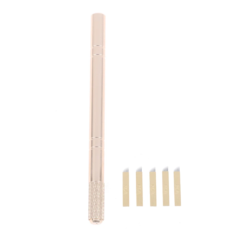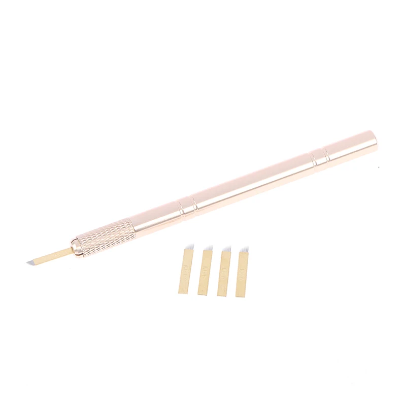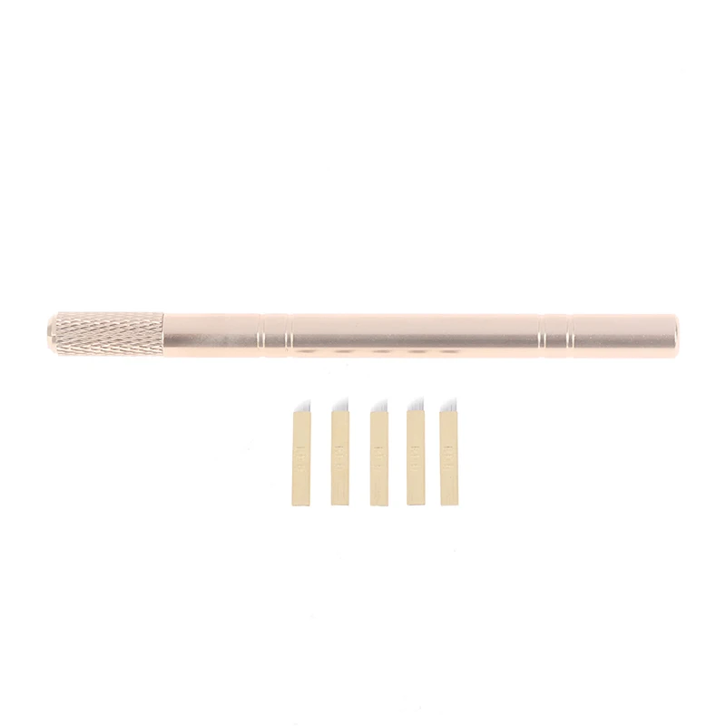 Тату-ручка золотистая Tebori 3D + 5 шт. 12 шт. игл для микроблейдинга татуировок Перманентный макияж ручной профессиональный набор для бровей