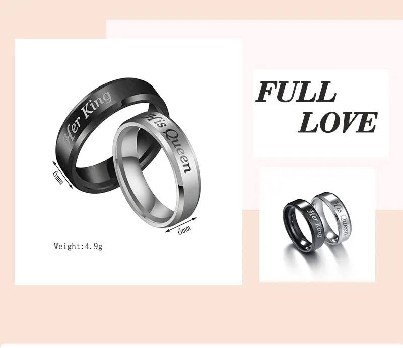 Кольцо HisQueenHerKing женскоемужское из нержавеющей стали шириной 6 мм