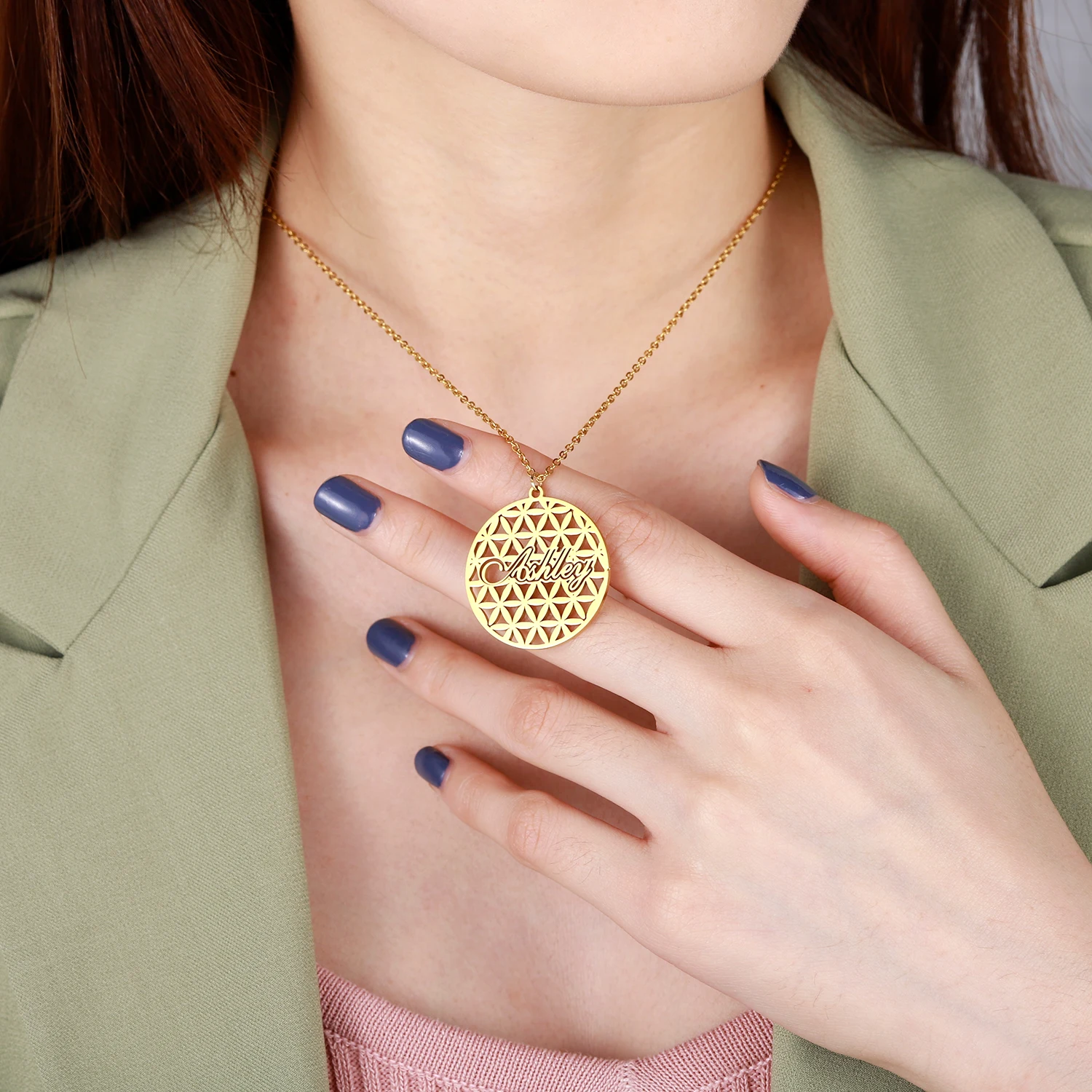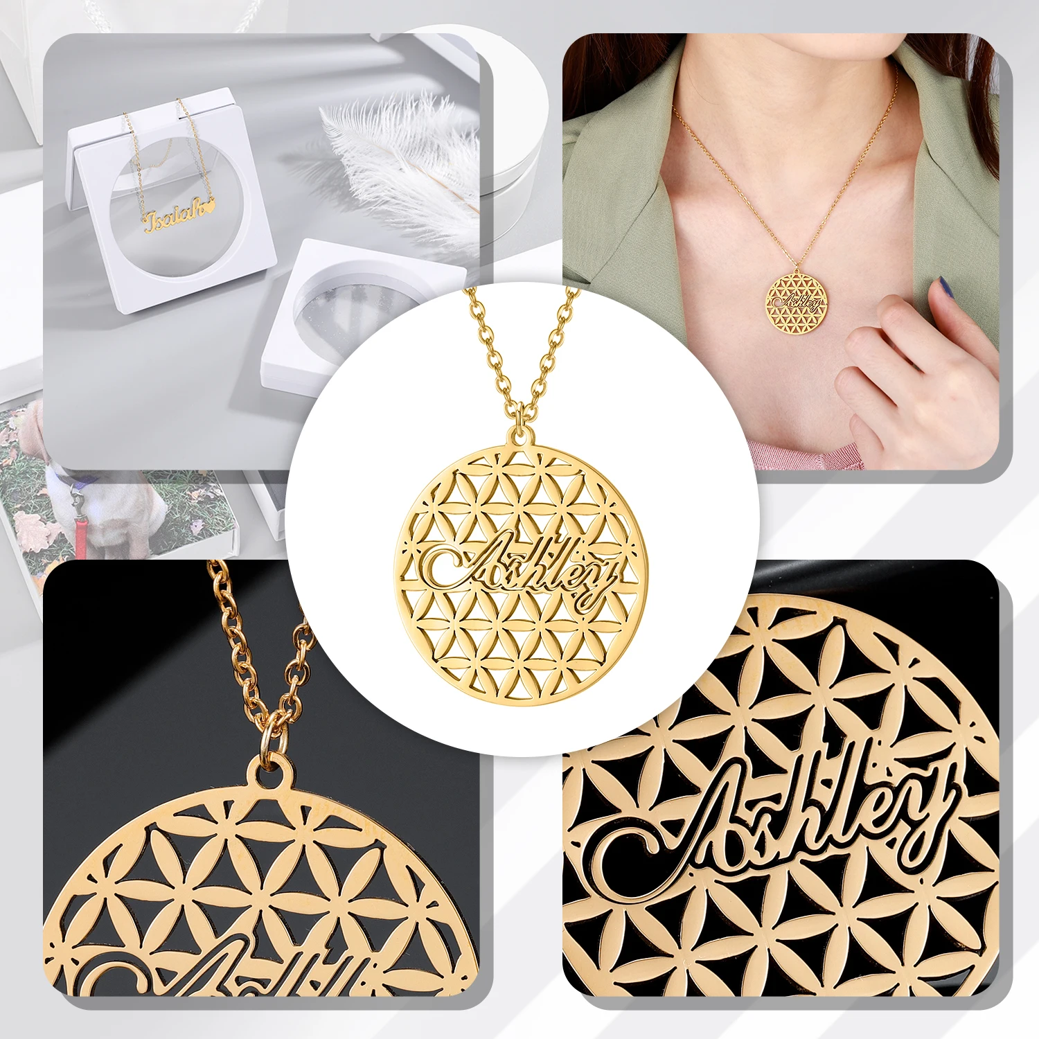 Персонализированное ожерелье с полым именем круглой формы, Индивидуальные ювелирные изделия из нержавеющей стали, Золотая подвеска, табличка с надписью для женщин