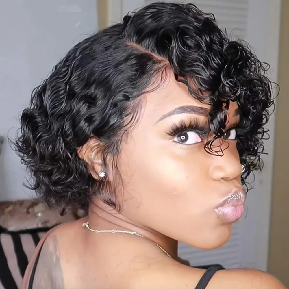Cexxy, 180%, парик с вырезами фея, Короткие вьющиеся человеческие волосы, парики, дешевые человеческие волосы, парик на всю машину, человеческие волосы