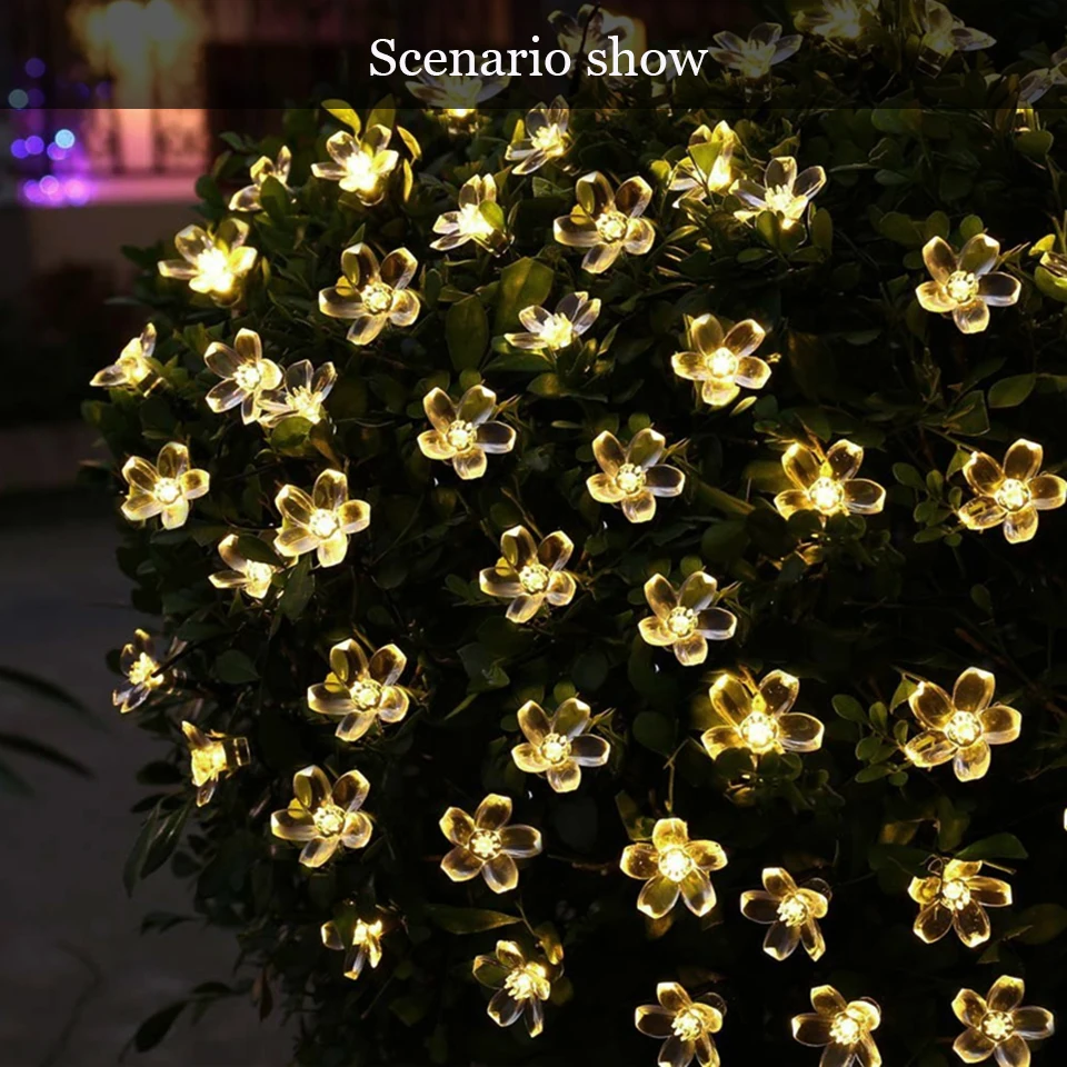Веревка с питанием от солнечной батареи, 30 светодиодов, Сказочная гирлянда с цветами вишни, Хрустальный цветок, Рождественское украшение для свадьбы, вечеринки, сада, улицы