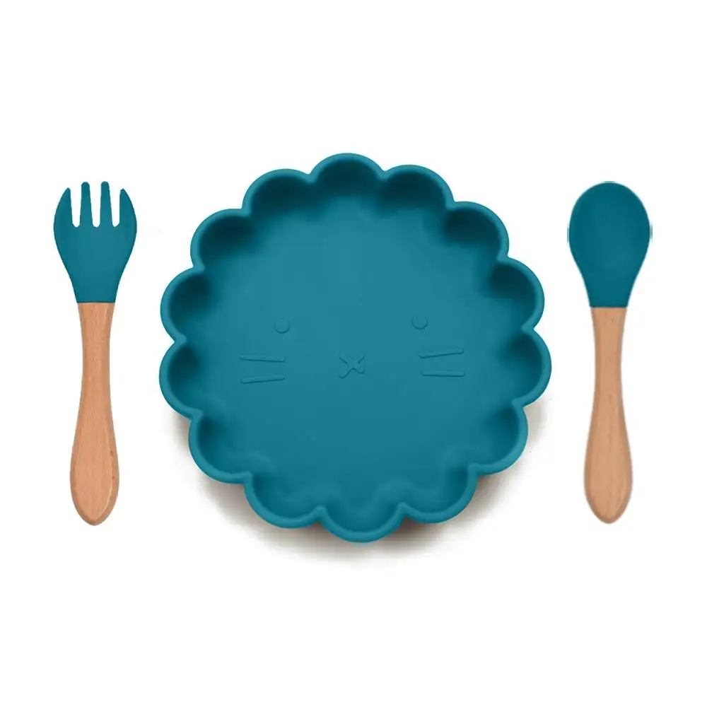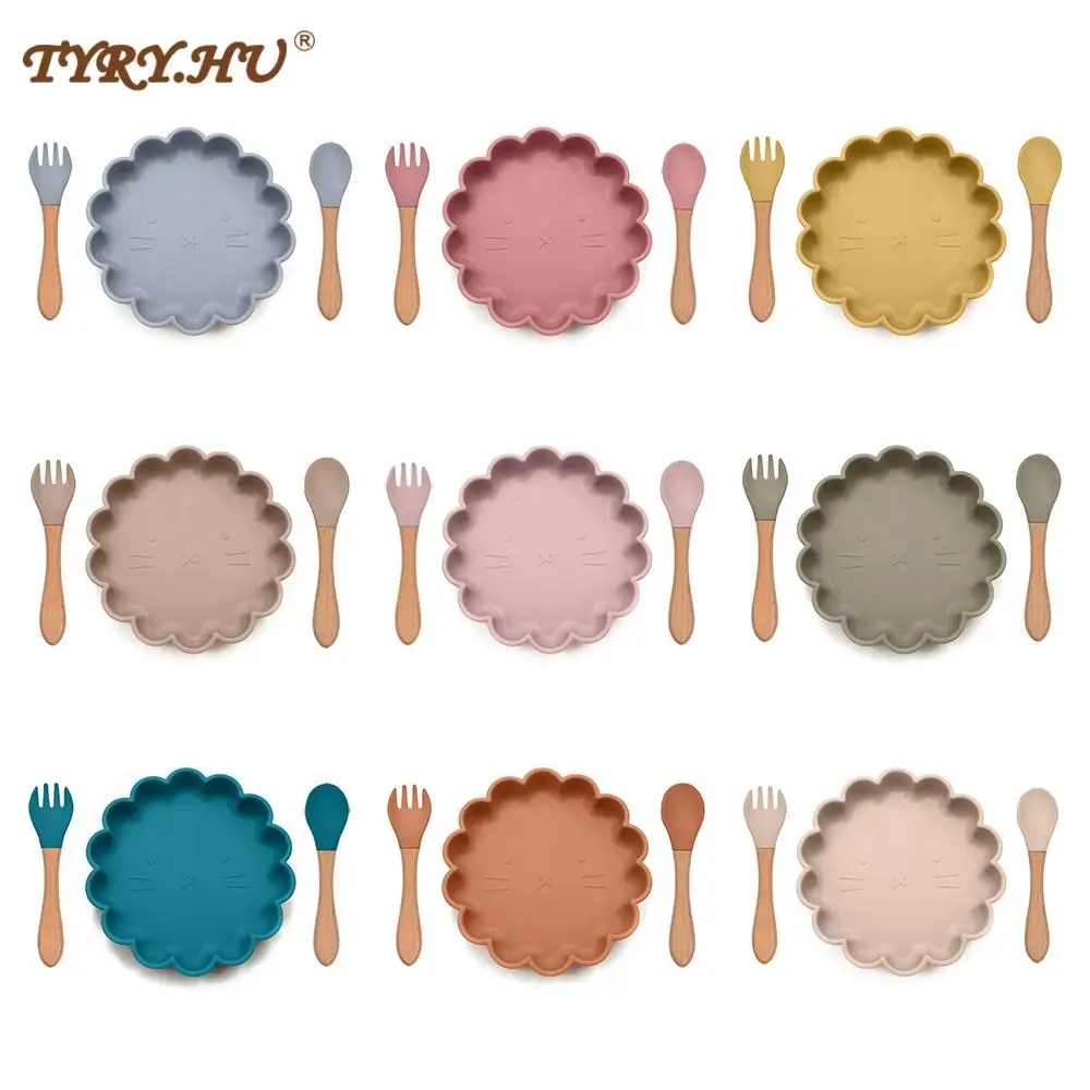 TYRY.HU, силиконовая тарелка, Детская тарелка, мультяшный Лев, набор ложка и вилка, силиконовая для кормления малышей, тарелка, детская посуда
