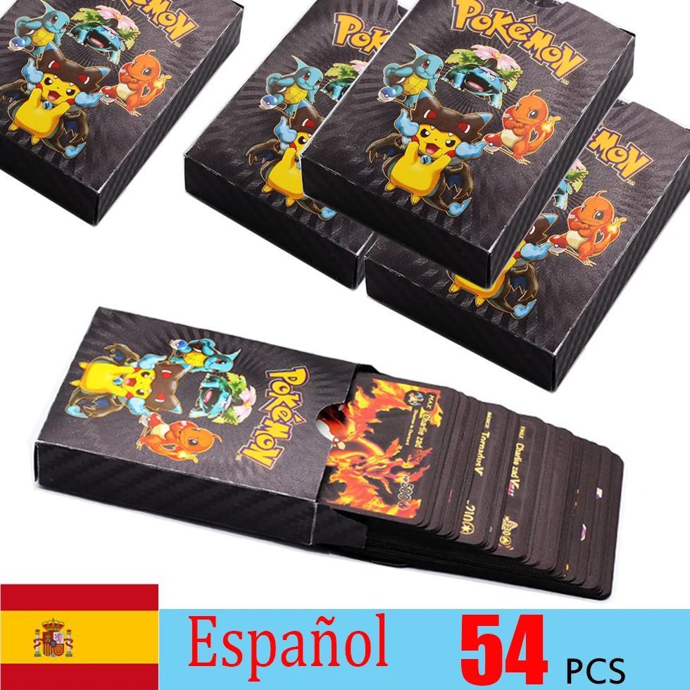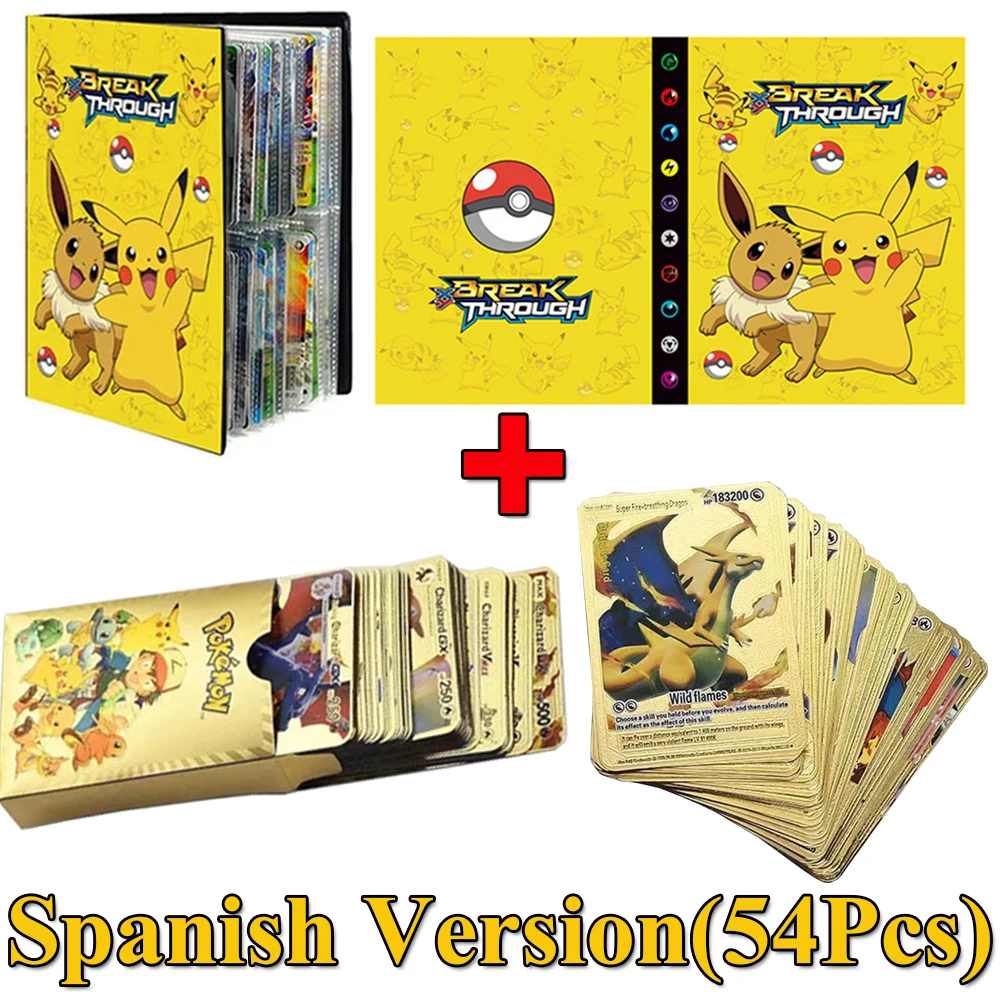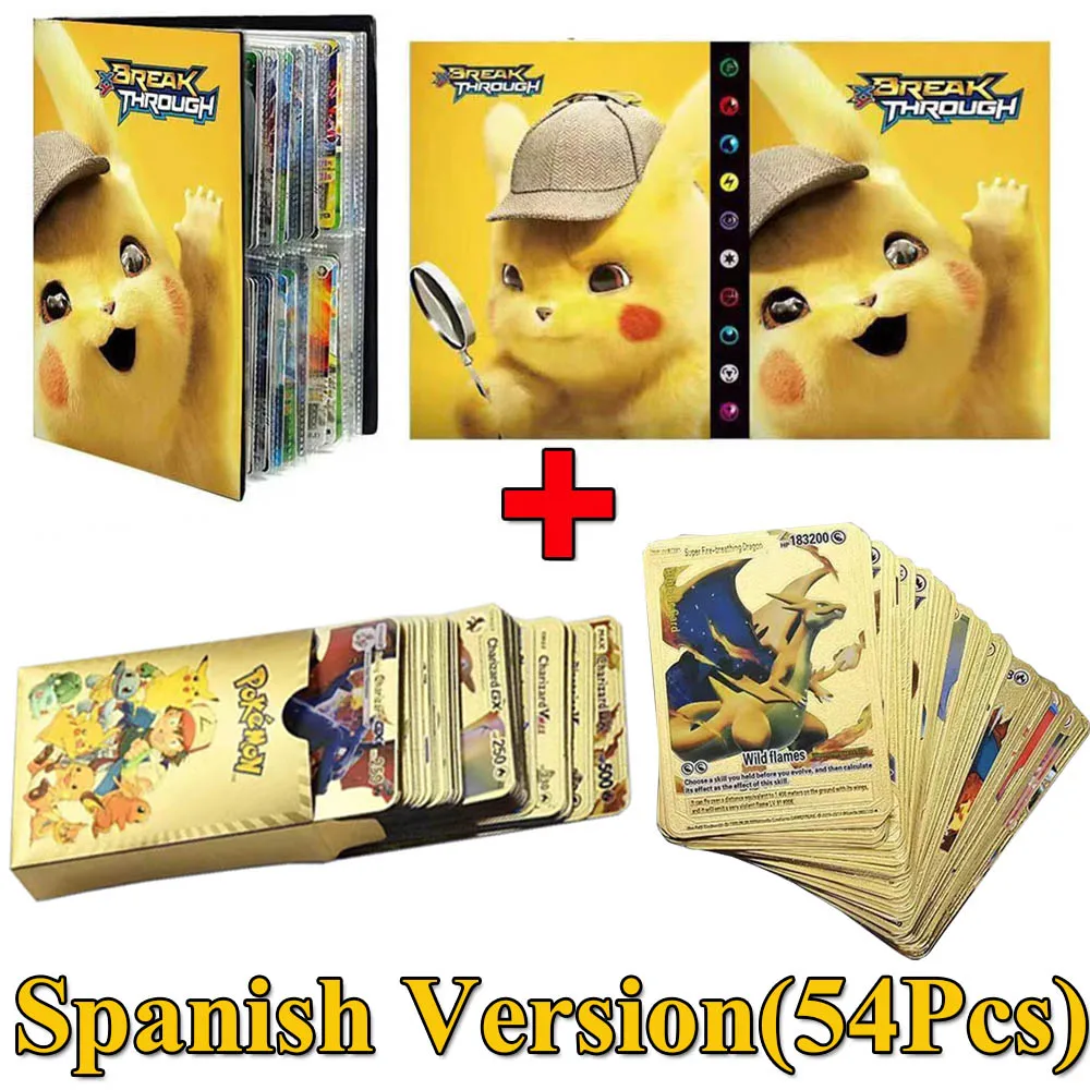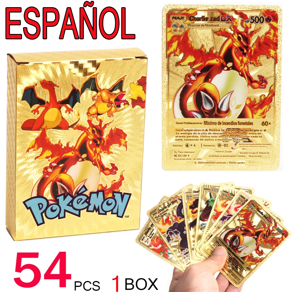 54 шт., эспанол, Покемон, металлические золотые карты, коробка, зол...
