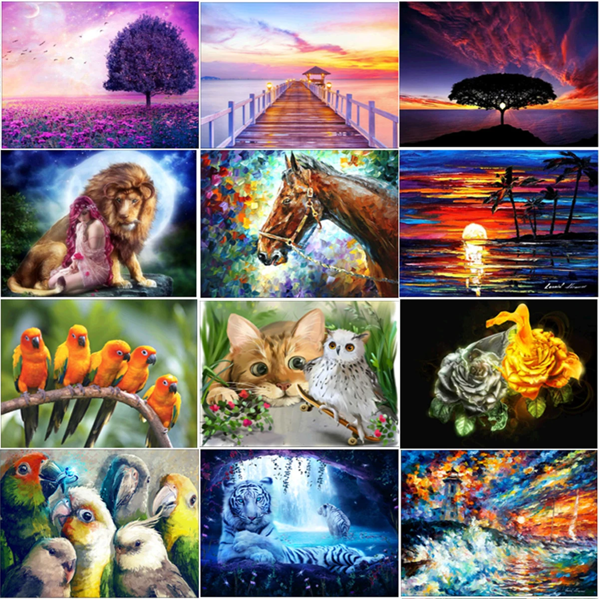 Алмазная живопись, Алмазная мозаика 5d с пейзажем и цветами, сделай...