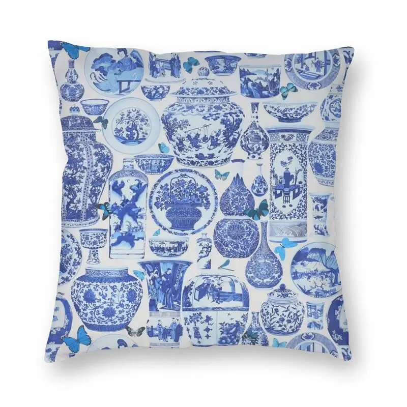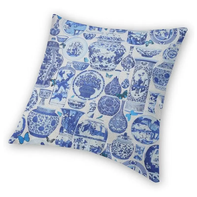 Модная китайская фарфоровая синяя Delft Восточная ткань, наволочка ...