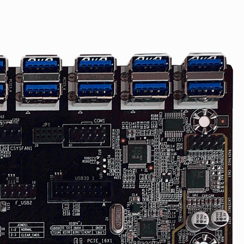 Основной набор микросхем: Intel B250CПамять: макс. 16 ГбЦвет: черныйРазмер: прибл. 23X17.5 см/9.05x6.88inЦП разъем: LGA 1151Слот для памяти: 2 × DDR4 DIMM слот для памятиЧастота: 2133/2400 МГцИнтеграция чипа сетевой карты: RTL8111F 100M сетевая картаАудио с возможностью установки чипа: 6-канальный звуковой чипХарактеристики процессора: платформа ЦП Intel Core 6, 7-го поколения/Pentium / CeleronСлот расширения:12 × USB3.0 до PCI-E X1 графический слот2 разъема USB2.01 x USB3.0 pin1 x COM pin1x6pin квадратный порт питания4 порта SATA3.0Порт ввода/вывода:PS/2 порт клавиатуры и мыши универсальный порт 21 × сетевой порт RJ451 × HDMI-совместимый выход высокой четкости2 порта USB 3,0, 4 порта USB 2,0Аудио портРазъем питания: ATX4pin + ATX24pin 12V + ATX24 PINBIOS: AMI 64 Мб флэш-память