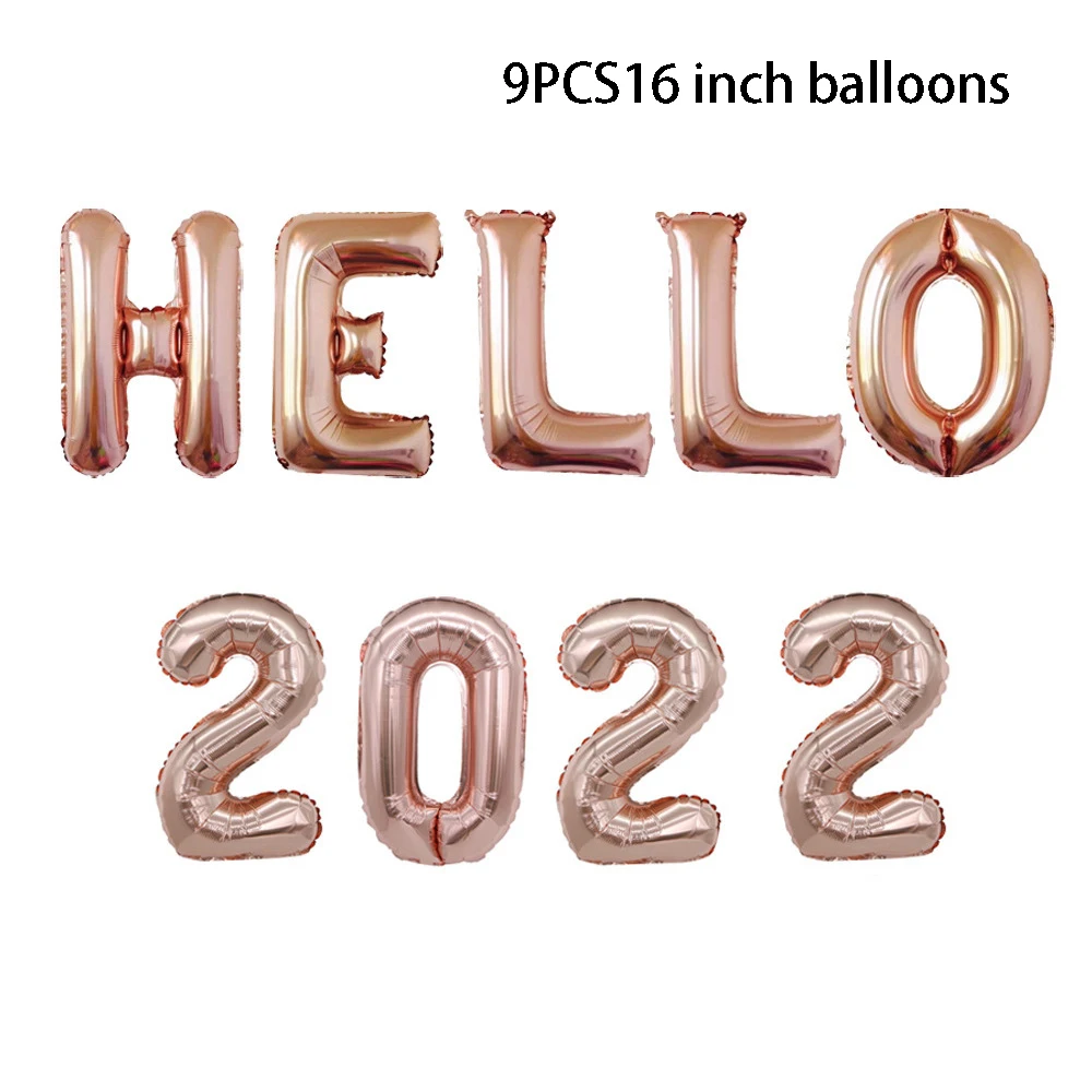 16-дюймовые золотые шары с новым годом 2022 из фольги с номером Hel...