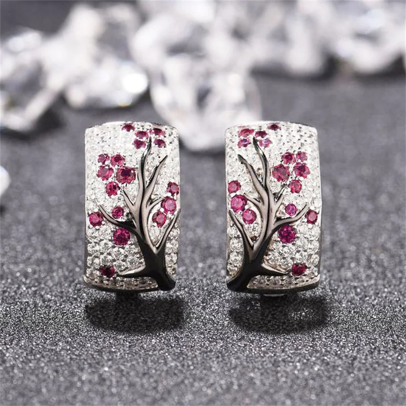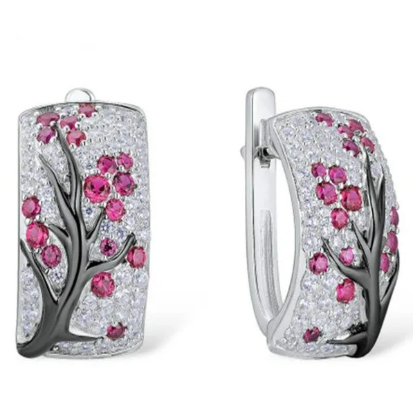 2021 элегантные серьги-гвоздики в форме сливы для женщин, инкрустация, высокое качество, розово-красный циркон, блестящие серьги с растениями для посещения мероприятий, фестиваля