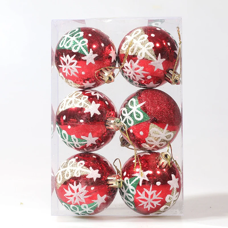Описание товара:Материал: пластикРазмер: 6 см/4 смКоличество: 6 шт. или 12 шт.Применимые варианты: подвески на рождественскую елку, Рождество, вечеринки, украшения на окно и т. д.Посылка включает в себя: 6 шт/12 шт набор рождественских шариков