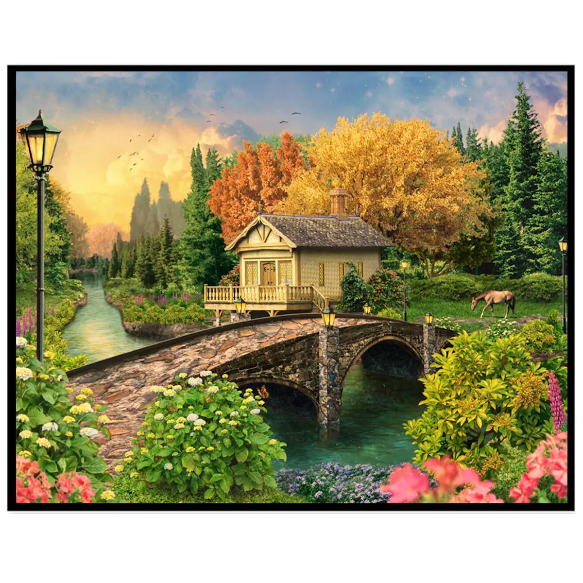Алмазная живопись, Алмазная мозаика 5d с пейзажем и цветами, сделай...