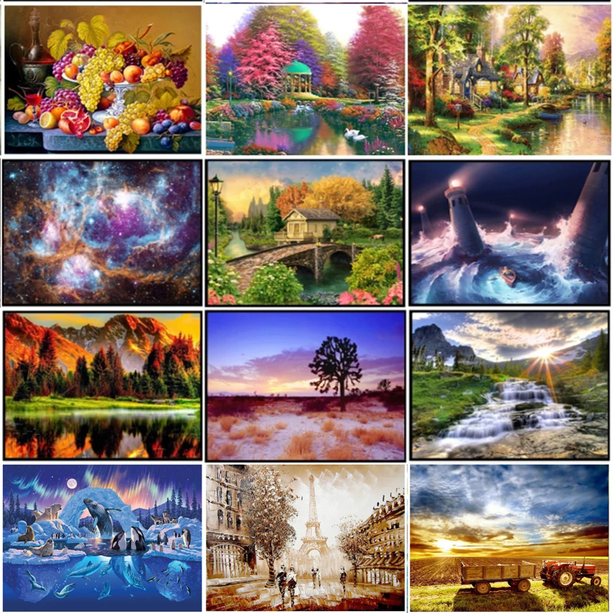 Pintura de diamantes 5D y bordado de flores de paisaje y punto de c...
