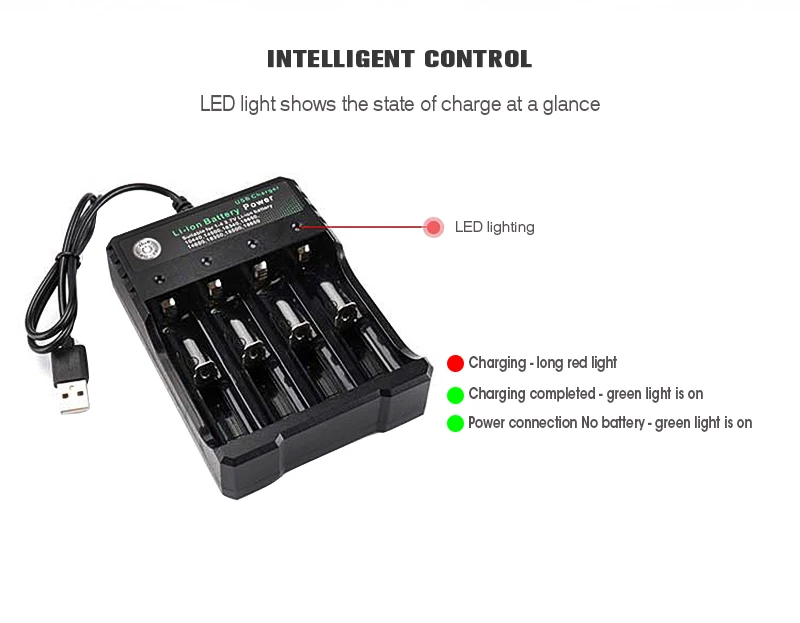 Зарядное устройство USB 18650, 4 слота, 110 В переменного тока