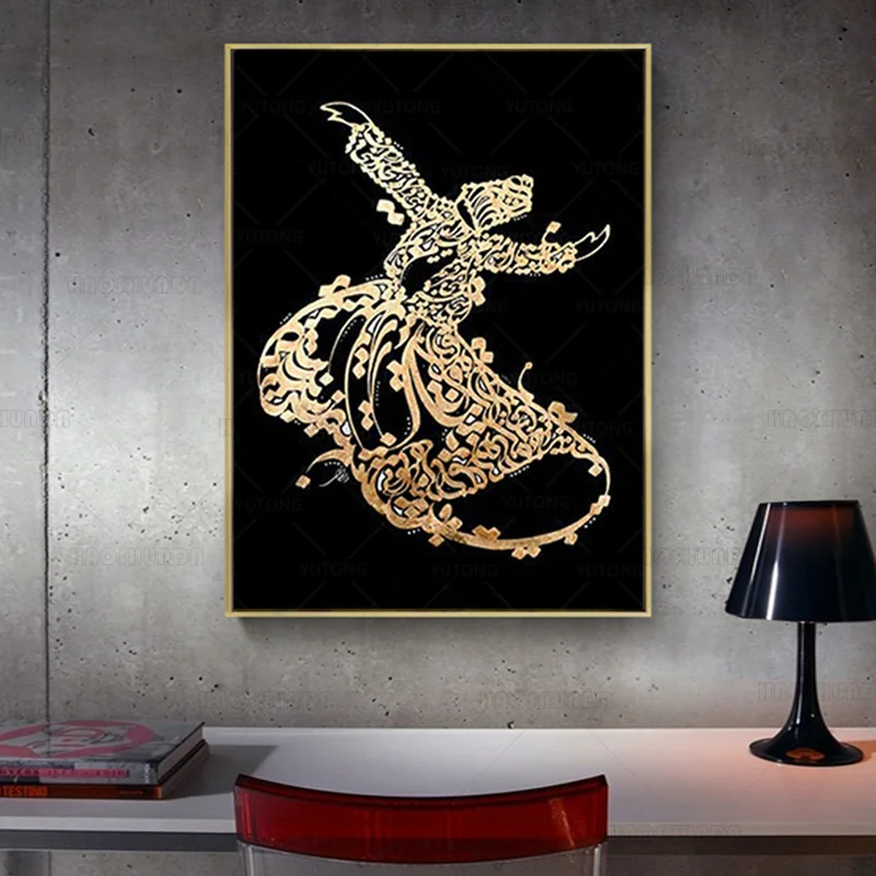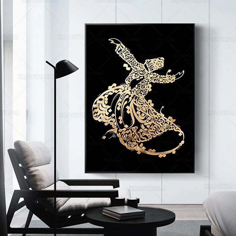 Древние танец Sufi и румские крутящиеся Дервиши с каллиграфией картина плакат и печать домашний декор персидский и турецкий подарок