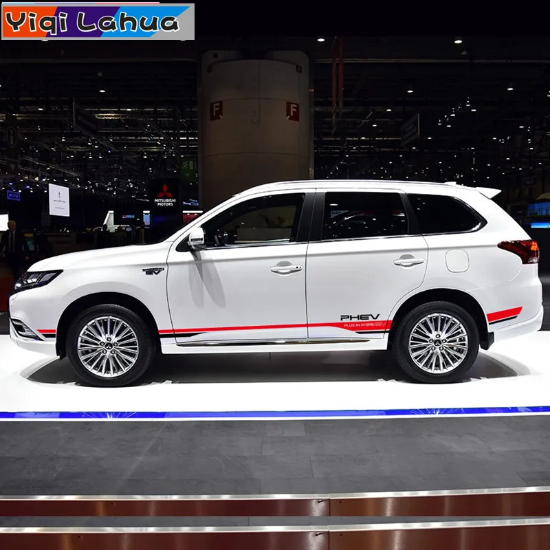 Спортивные полосы, наклейки на боковую дверь автомобиля, юбку для Mitsubishi Outlander PHEV, украшение для кузова автомобиля, виниловые наклейки