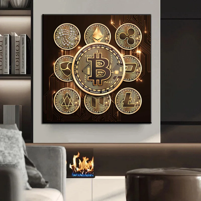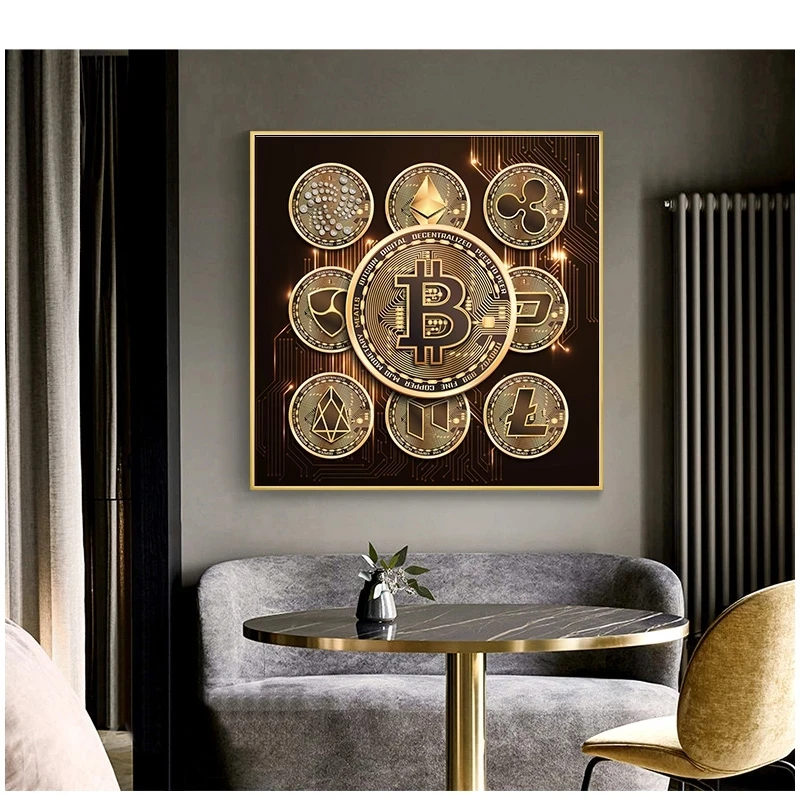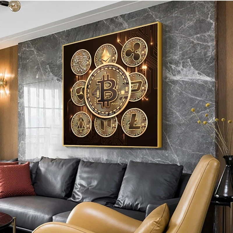 Скандинавский постер и принты биткоинов, Роскошные Настенные картин...