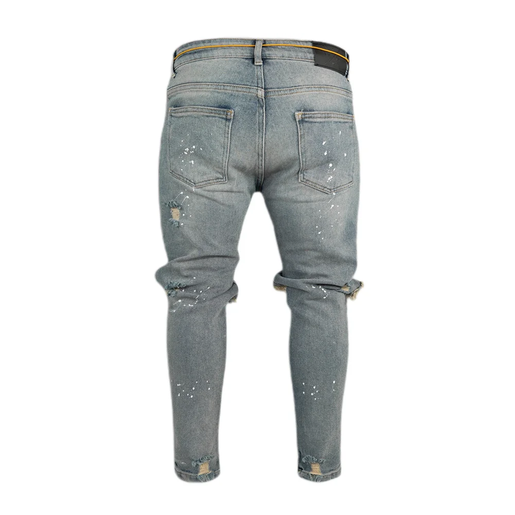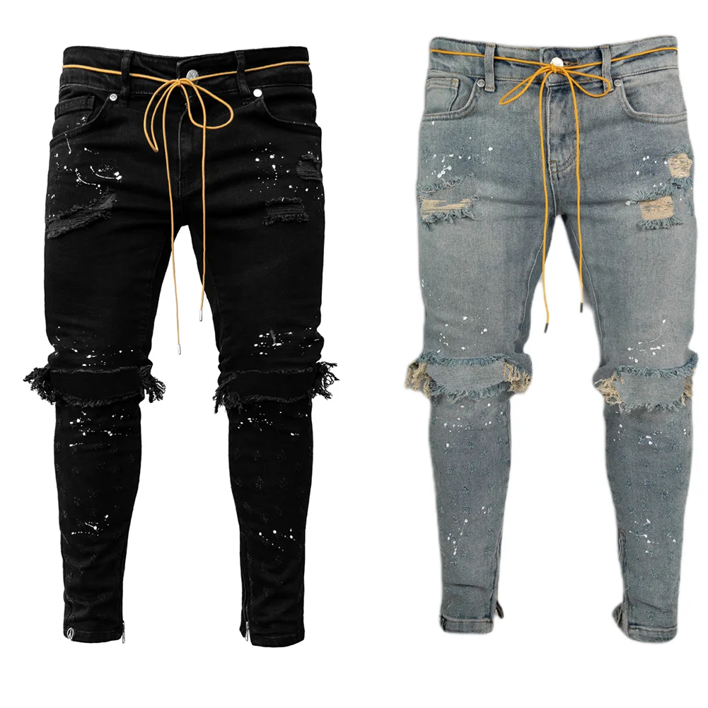 Мужские рваные джинсы в стиле хип-хоп, облегающие брюки-карандаш в байкерском стиле с вышивкой, модель 2021 года