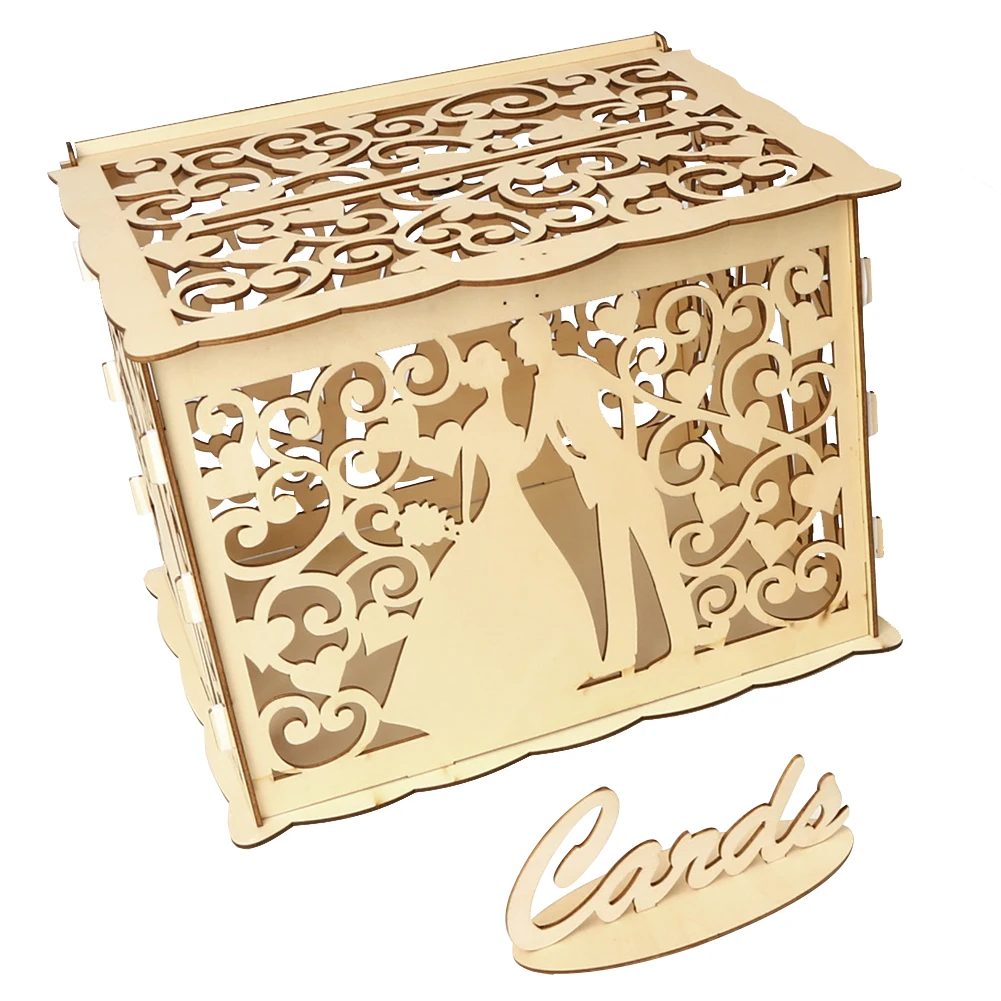 Деревянный Свадебный конверт, Подарочная карточка, открытая карточка для приглашений, коробка сделай сам, свадебные принадлежности, праздничные украшения вечерние