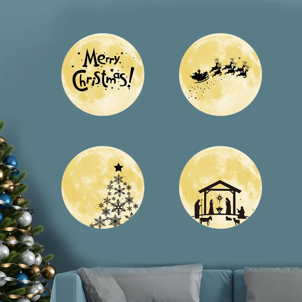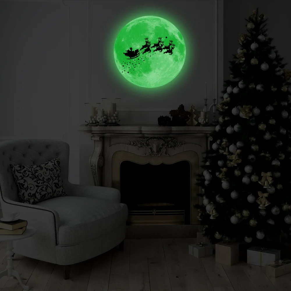 Рождественские наклейки на окна и луну, 30 см, светящиеся украшения для дома, 2022, снеговик, дерево, Санта-Клаус Вечерние