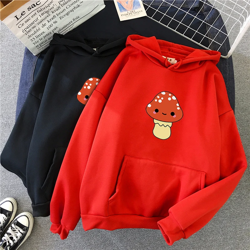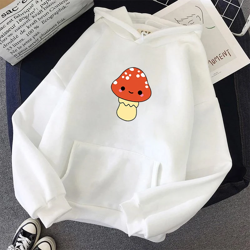 Толстовки, уличная одежда 2021, модная эстетичная флисовая толстовка с капюшоном и длинным рукавом в стиле 90-х с принтом грибов, кавайная одежда с графическим принтом