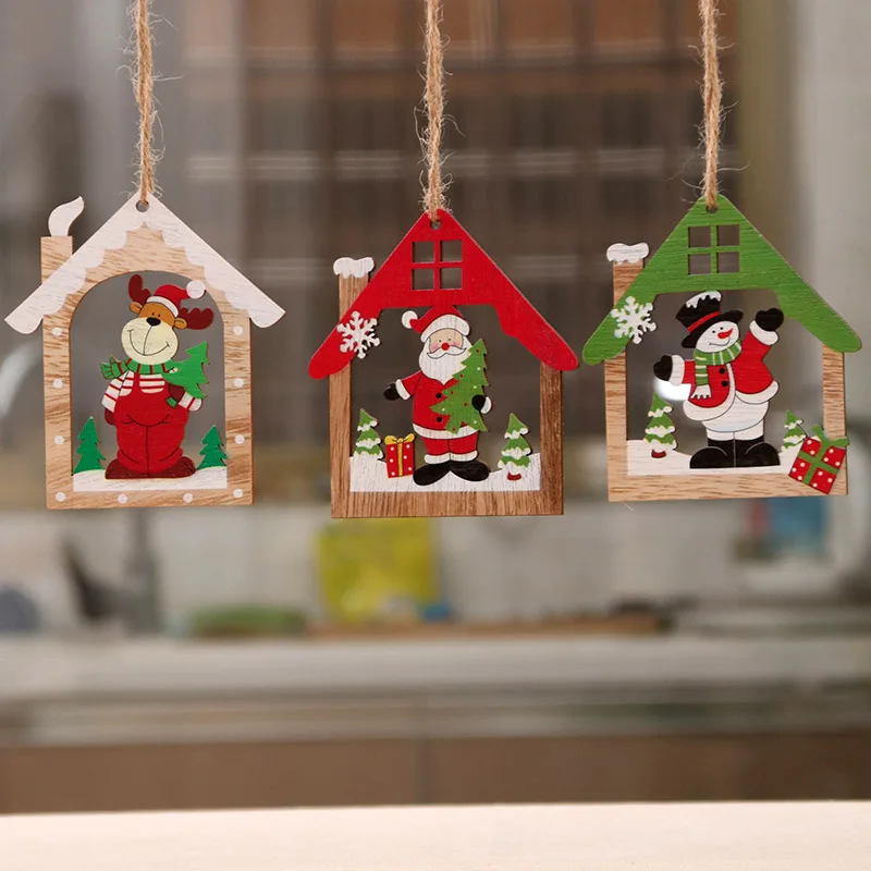 Рождественские деревянные подвески, рождественские украшения для ел...