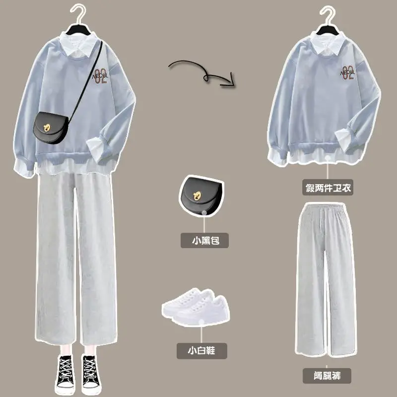 Свитшот с широкими штанинами для женщин, костюм в стиле преппи для осени и зимы 2022, корейский красивый спортивный темпераментный костюм для отдыха из двух предметов для бега