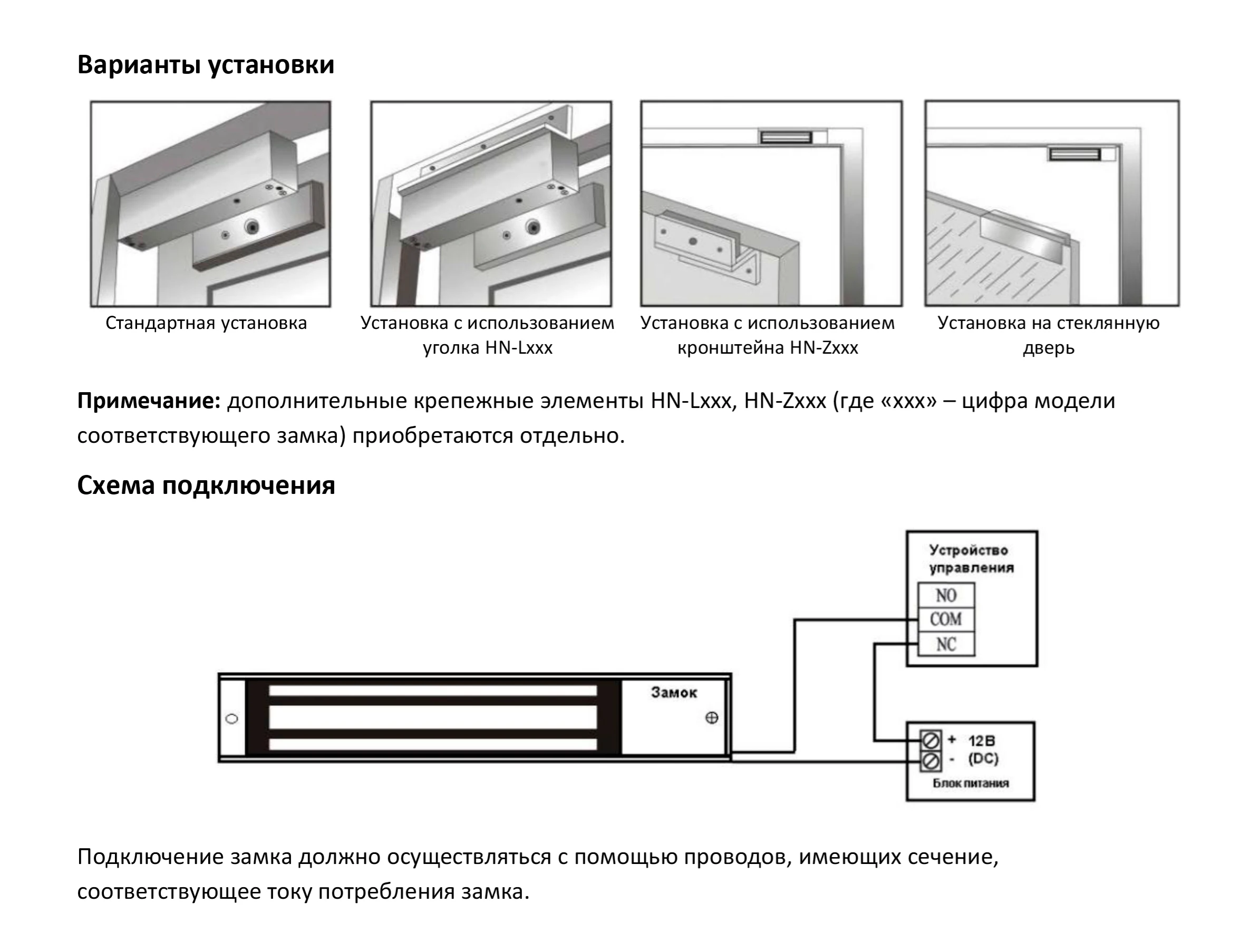 Рекомендуется устанавливать электромагнитный замок совместно с дверным доводчиком для уменьшения ударной нагрузки. Это воспрепятствует раскручиванию крепежных элементов.