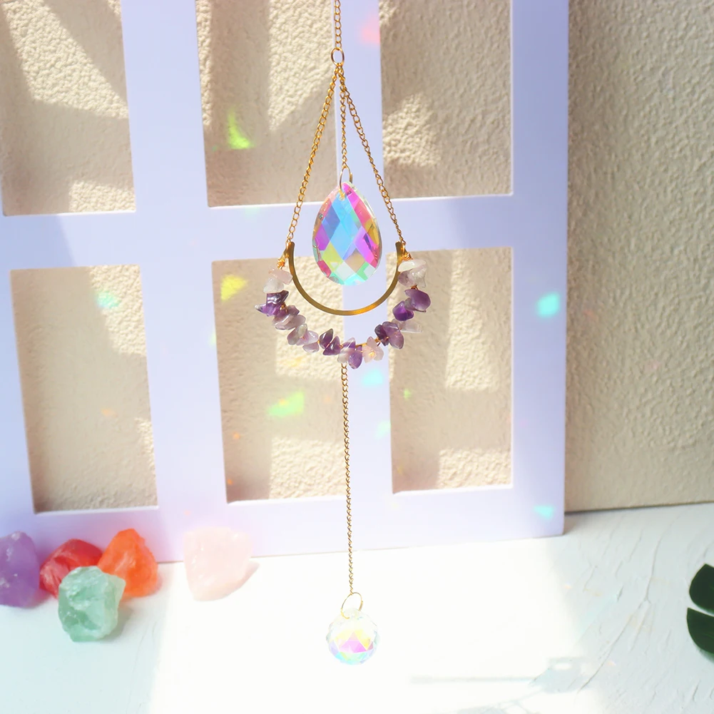 Аметист солнечные ветряные кулоны ловли камень кристалл чакра Радуг...