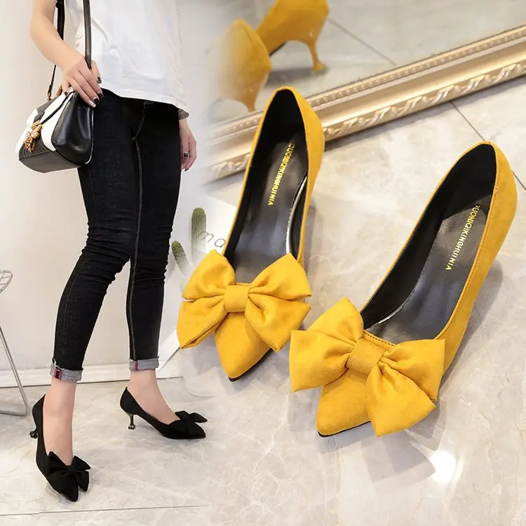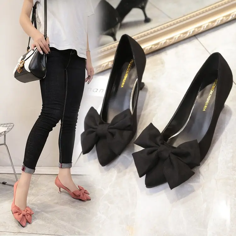 Женские туфли, новинка 2021, заостренный носок, замша, бант, женская обувь, низкий каблук, высокий каблук, слипоны, модная женская обувь