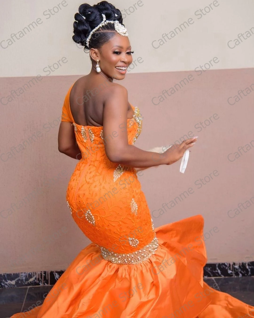 Шикарные оранжевые бриллиантовые вечерние платья 2021, элегантные блестящие вечерние платья на одно плечо со стразами и бисером для женщин, изготовленные на заказ
