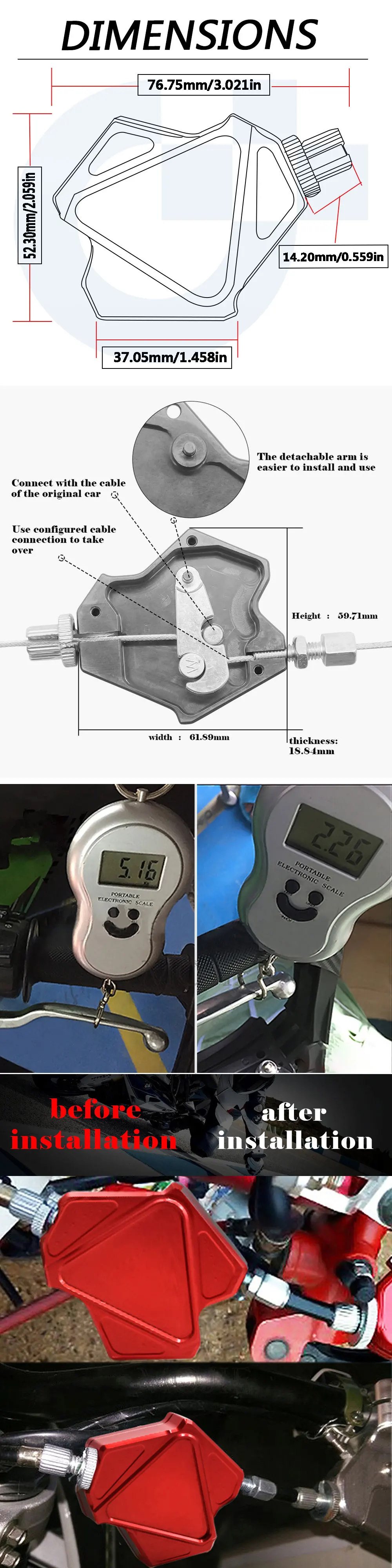 Характеристика:Может уменьшить 50% давления рычага сцепления, сделать его более комфортным. Кабель сцепления будет длиннее (13-14 см), чем у оригинала.