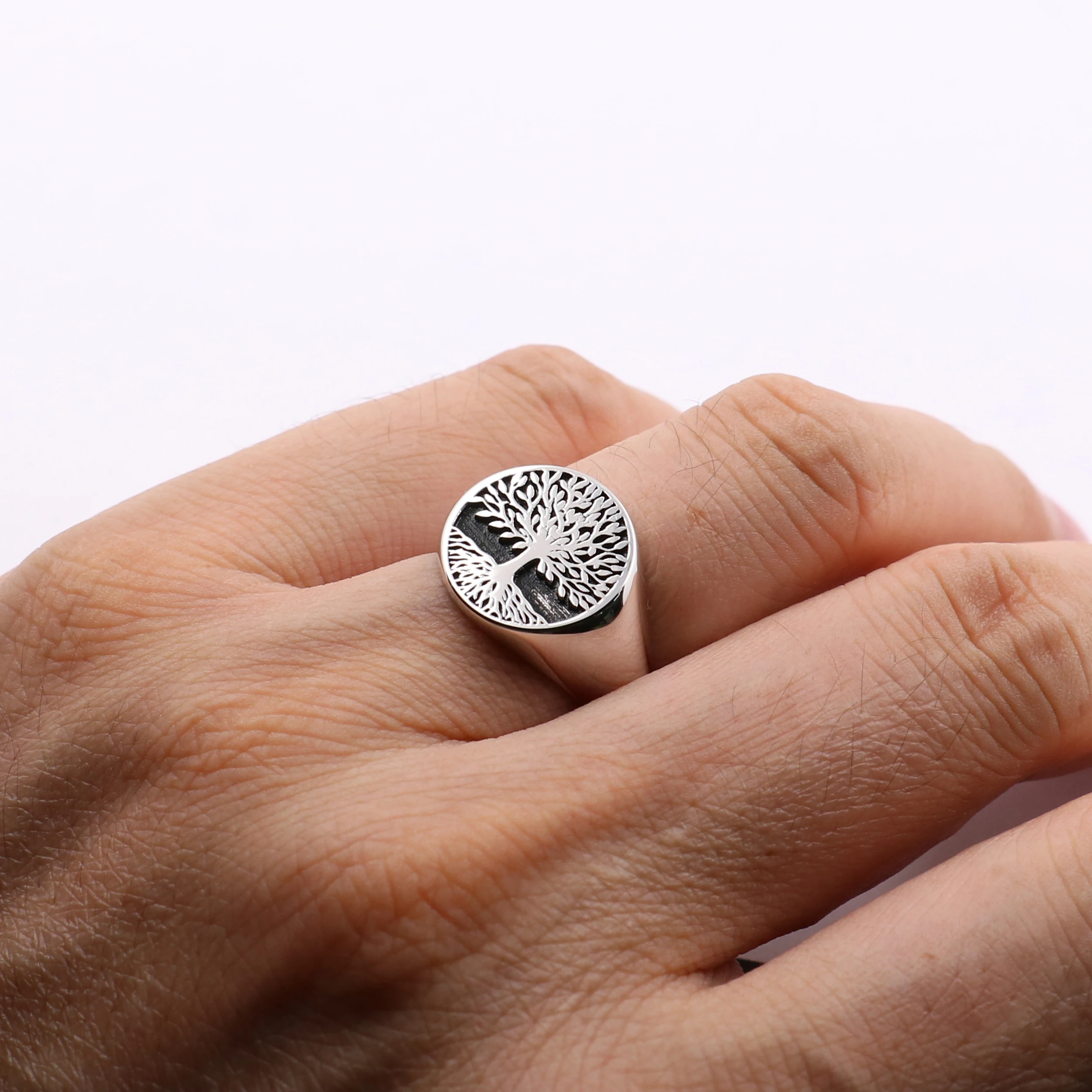 Кольцо унисекс из чистого серебра с изображением дерева жизни