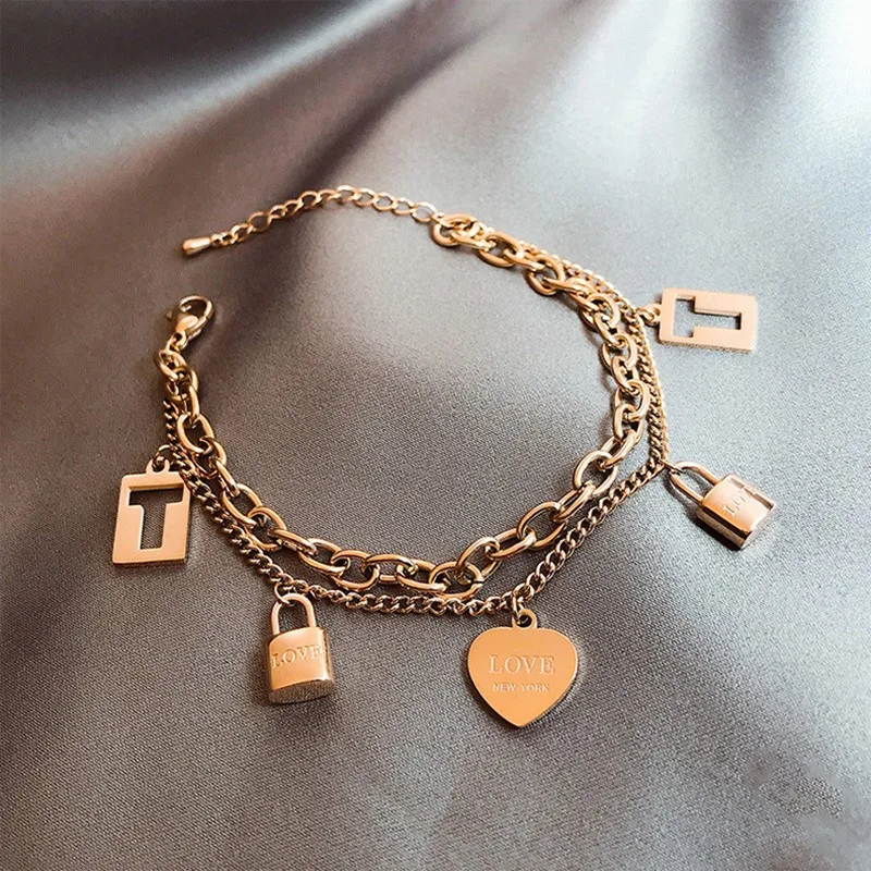 Женский двухслойный браслет MEYRROYU, трехцветный браслет из нержавеющей стали с геометрическим рисунком в виде сердца, Подарочная бижутерия, 2021