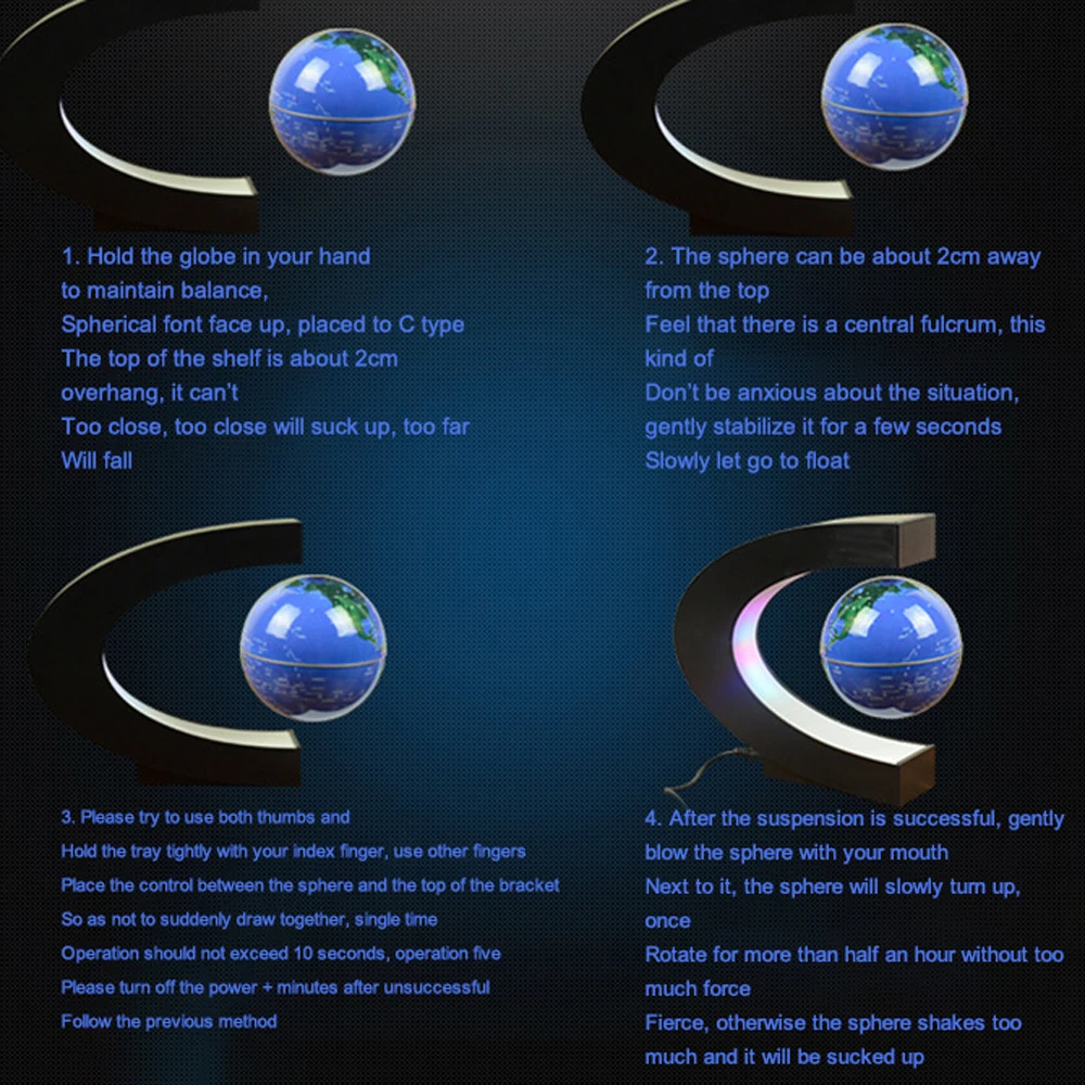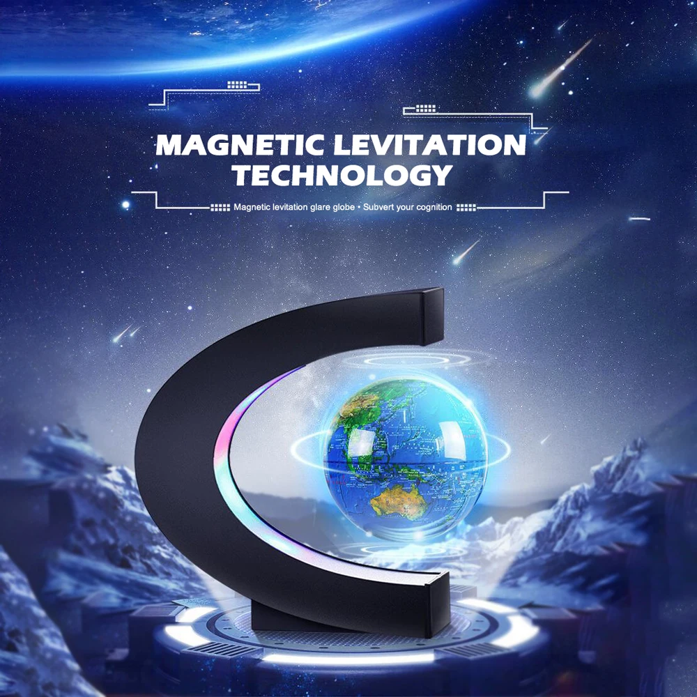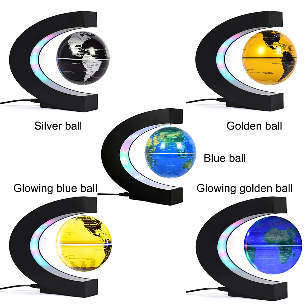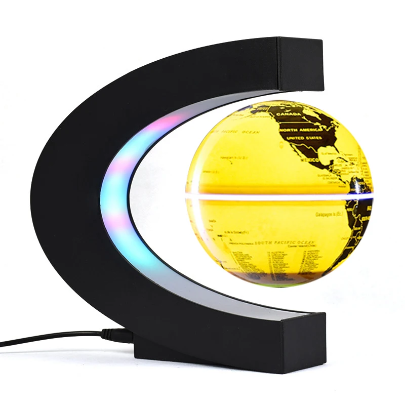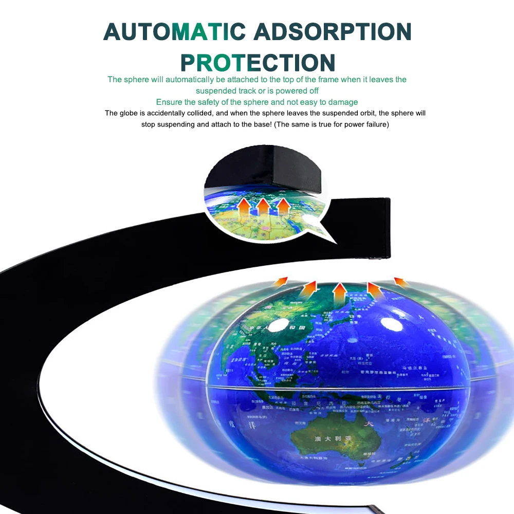 Плавающий глобус светодиодный светодиодными лампами, C-образный Магнитный левитационный Плавающий глобус, карта мира для украшения стола