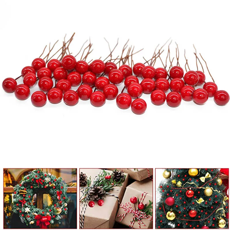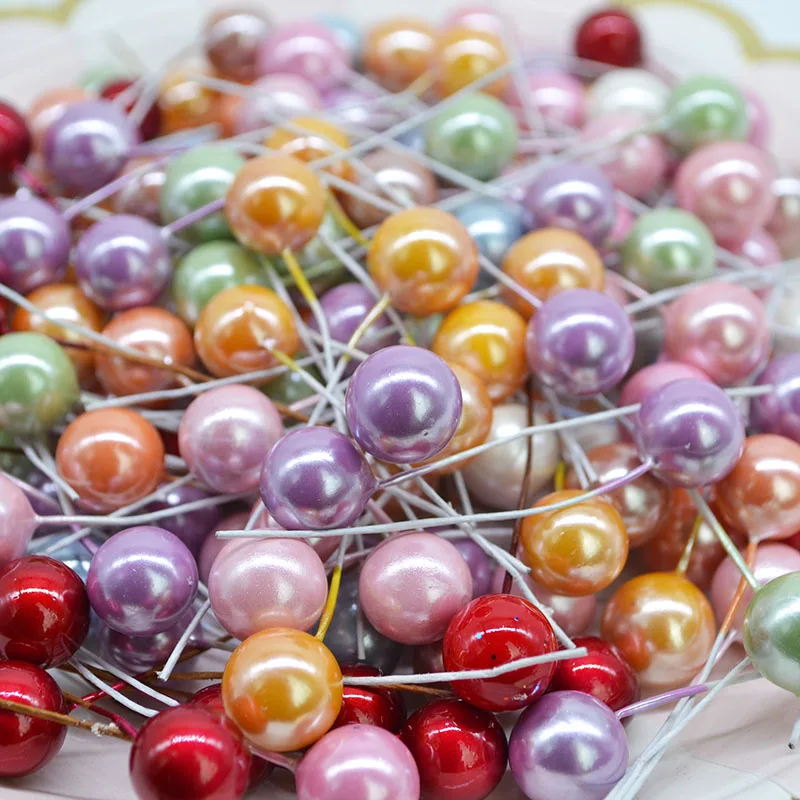 100 шт.лот 12 мм жемчужные пластиковые тычинки, искусственные цветы, маленькие ягоды, вишня для свадьбы, рождественские коробки для торта, венки, украшения