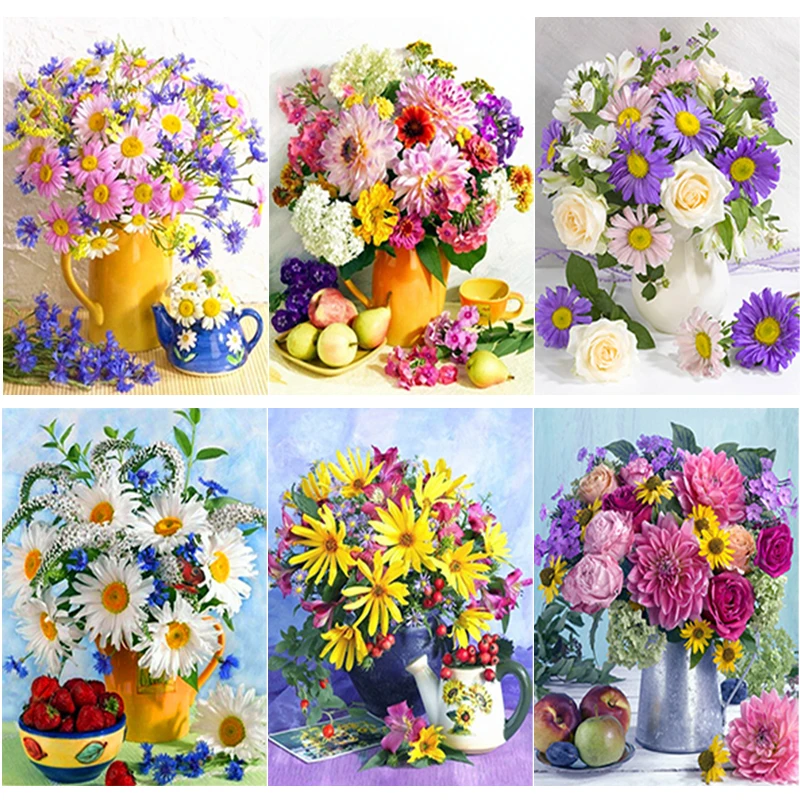 Алмазная 5D Вышивка сделай сам, картина с квадратными и круглыми стразами, свежие цветы, пейзаж, вышивка крестиком, домашний декор, ручной подарок
